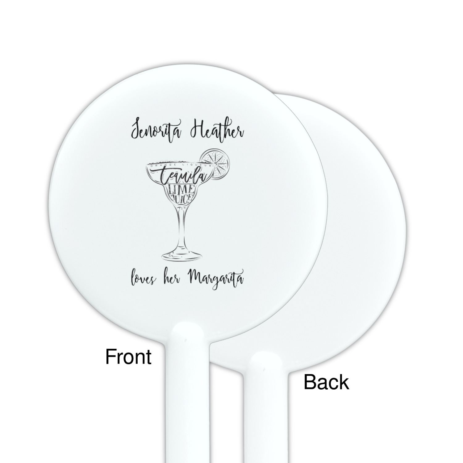 This margarita design has a lovely black illustration of a margarita glass with text inside saying "orange liqueur," "tequila," and "lime juice." Above and below this graphic is where your personalization goes. The pattern behind the graphic has a simpler margarita glass that is a light green while the rest of the pattern is a light lime green. This is a fun design to put on your beach, pool, or kitchen accessories.