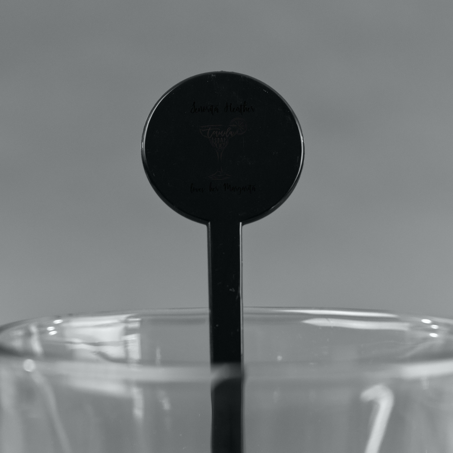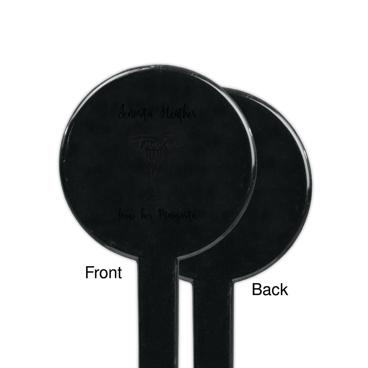 This margarita design has a lovely black illustration of a margarita glass with text inside saying "orange liqueur," "tequila," and "lime juice." Above and below this graphic is where your personalization goes. The pattern behind the graphic has a simpler margarita glass that is a light green while the rest of the pattern is a light lime green. This is a fun design to put on your beach, pool, or kitchen accessories.