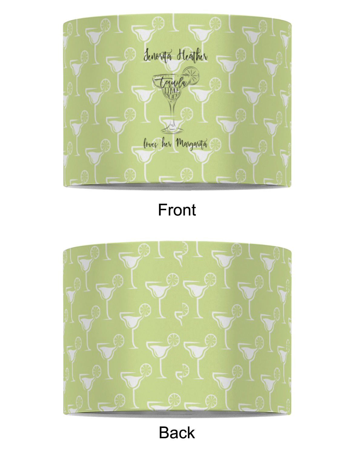 This margarita design has a lovely black illustration of a margarita glass with text inside saying "orange liqueur," "tequila," and "lime juice." Above and below this graphic is where your personalization goes. The pattern behind the graphic has a simpler margarita glass that is a light green while the rest of the pattern is a light lime green. This is a fun design to put on your beach, pool, or kitchen accessories.