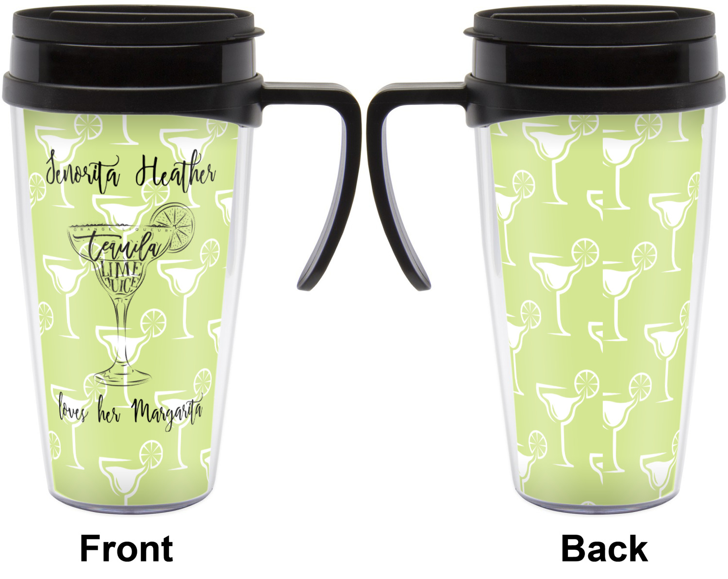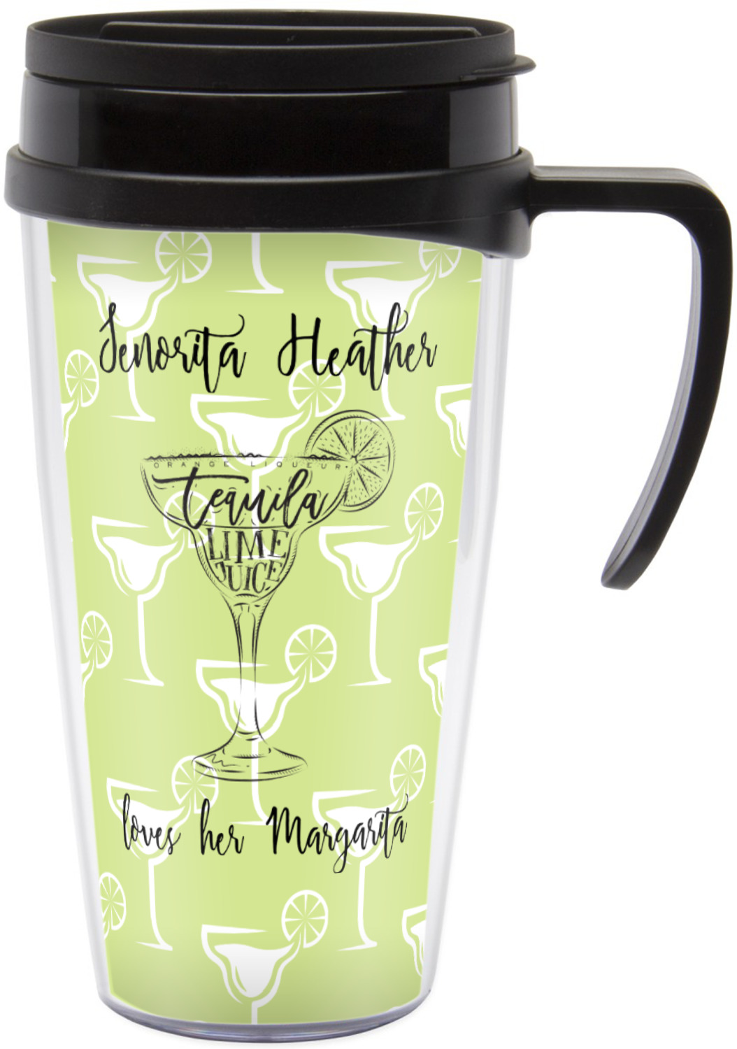 These thermal mugs are free of BPA, and insulated, to keep your drinks hot or cold. The black, snap on lid and the slider for sipping allows you to conveniently sip your drink without constantly worrying about a disastrous spill. We offer this mug with and without a handle, to better suit your needs. Each custom thermal mug holds up to 16 ounces of liquid and displays your customization on all sides on premium gloss media inserts.