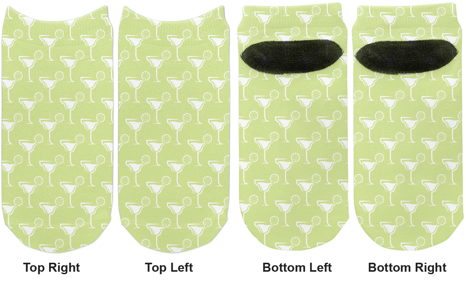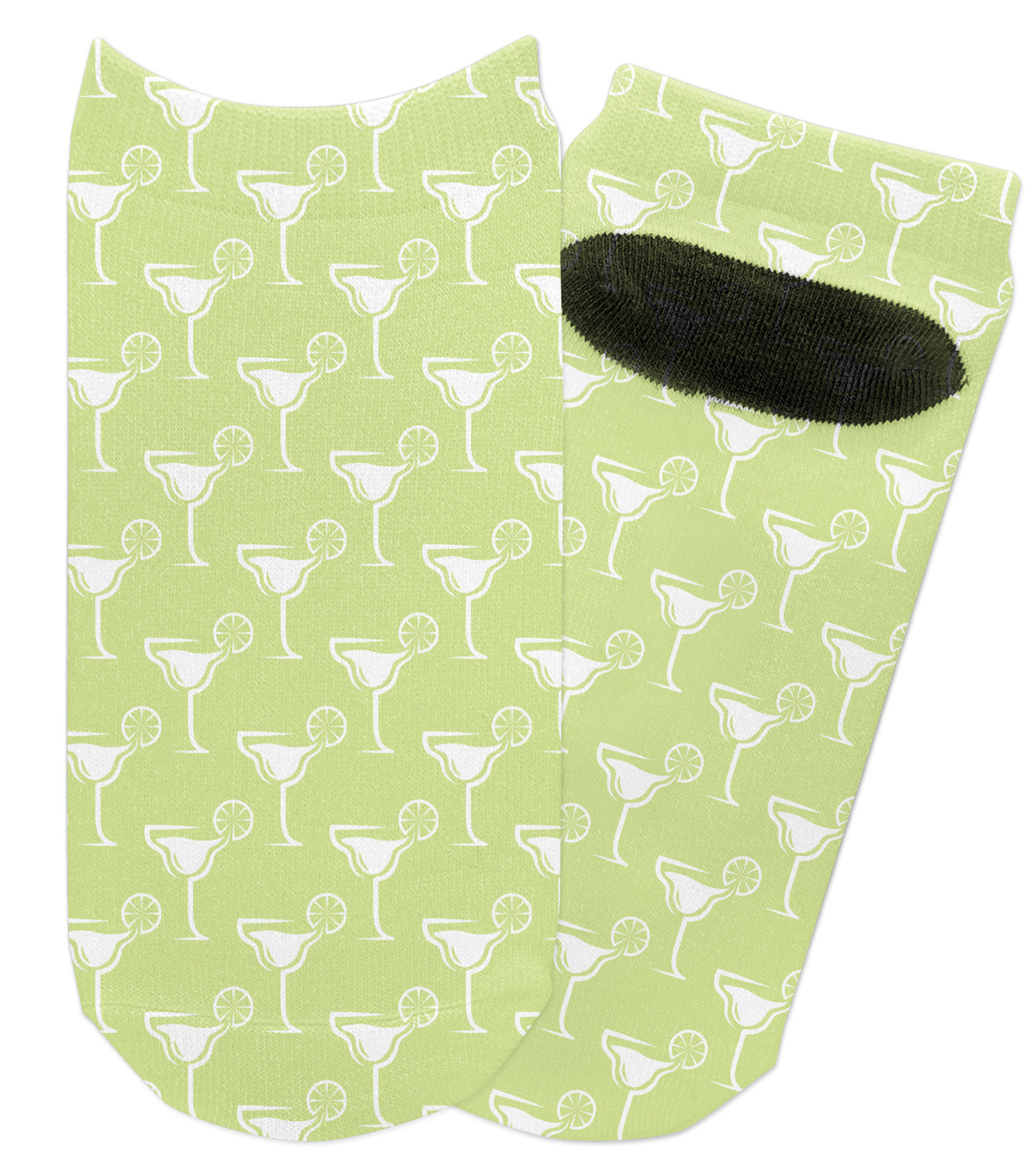 This margarita design has a lovely black illustration of a margarita glass with text inside saying "orange liqueur," "tequila," and "lime juice." Above and below this graphic is where your personalization goes. The pattern behind the graphic has a simpler margarita glass that is a light green while the rest of the pattern is a light lime green. This is a fun design to put on your beach, pool, or kitchen accessories.