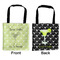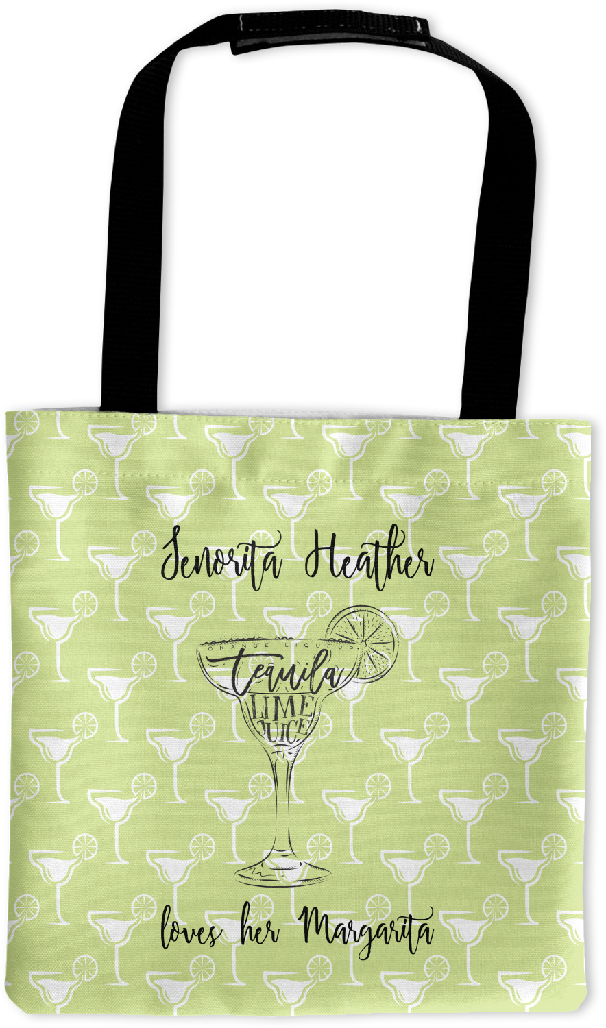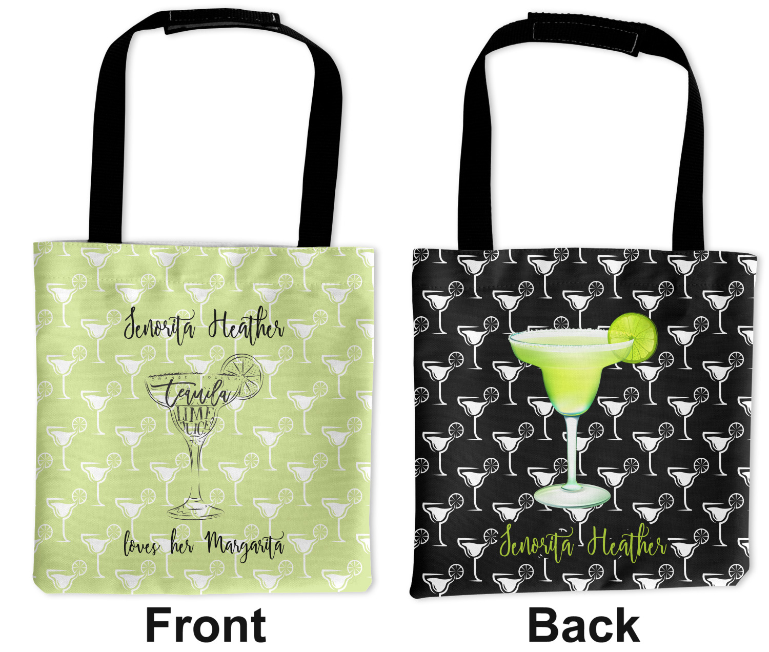 This margarita design has a lovely black illustration of a margarita glass with text inside saying "orange liqueur," "tequila," and "lime juice." Above and below this graphic is where your personalization goes. The pattern behind the graphic has a simpler margarita glass that is a light green while the rest of the pattern is a light lime green. This is a fun design to put on your beach, pool, or kitchen accessories.