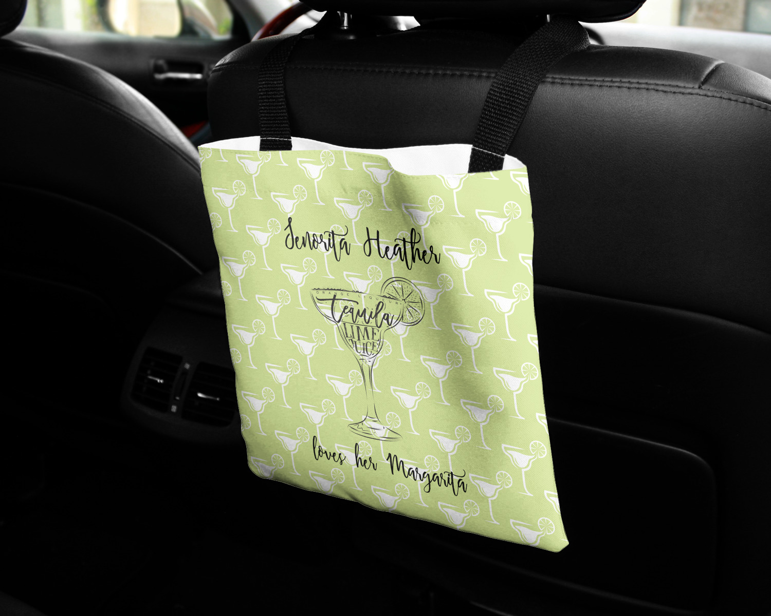 These car back seat organizers are sturdy tote-like bags, fabricated from a robust polyester, and features a single handle on the back side. The strap features an attachable velcro for easy attachment to headrests, grocery carts, car seats, and more. Simply undo the velcro, loop the strap around the headrest, reattach the velcro, and let the organizer hang from the front seat. These car organizers are the perfect means of increasing your backseat's legroom, while storing multiple items in one place for better accessibility. Each car back seat organizer measures at 10 by 10 inches, and features your personalized design printed across its front and back.