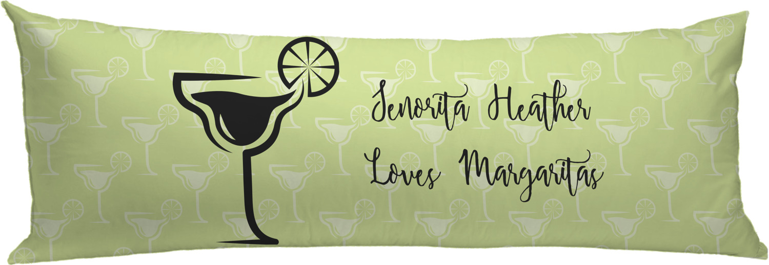 This margarita design has a lovely black illustration of a margarita glass with text inside saying "orange liqueur," "tequila," and "lime juice." Above and below this graphic is where your personalization goes. The pattern behind the graphic has a simpler margarita glass that is a light green while the rest of the pattern is a light lime green. This is a fun design to put on your beach, pool, or kitchen accessories.