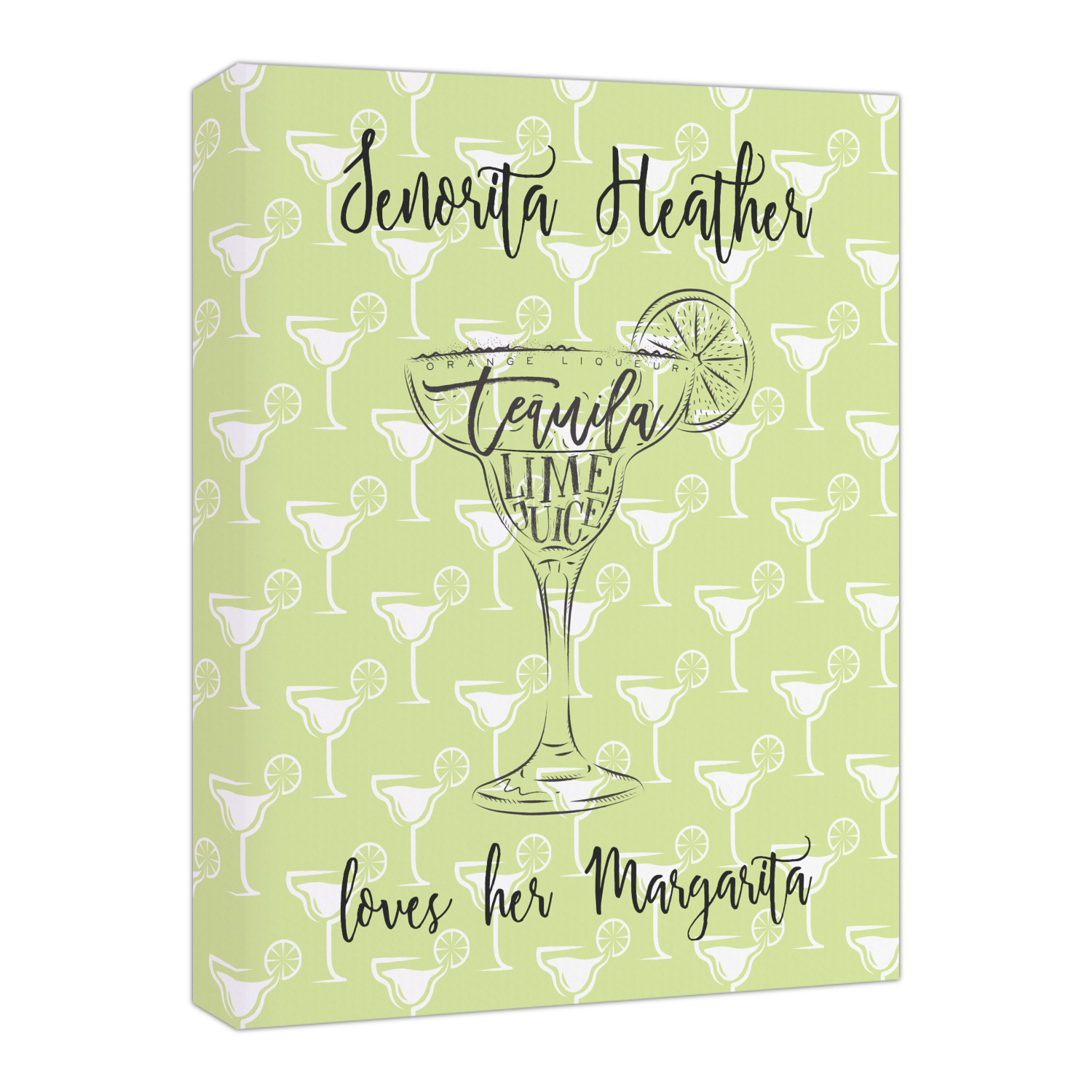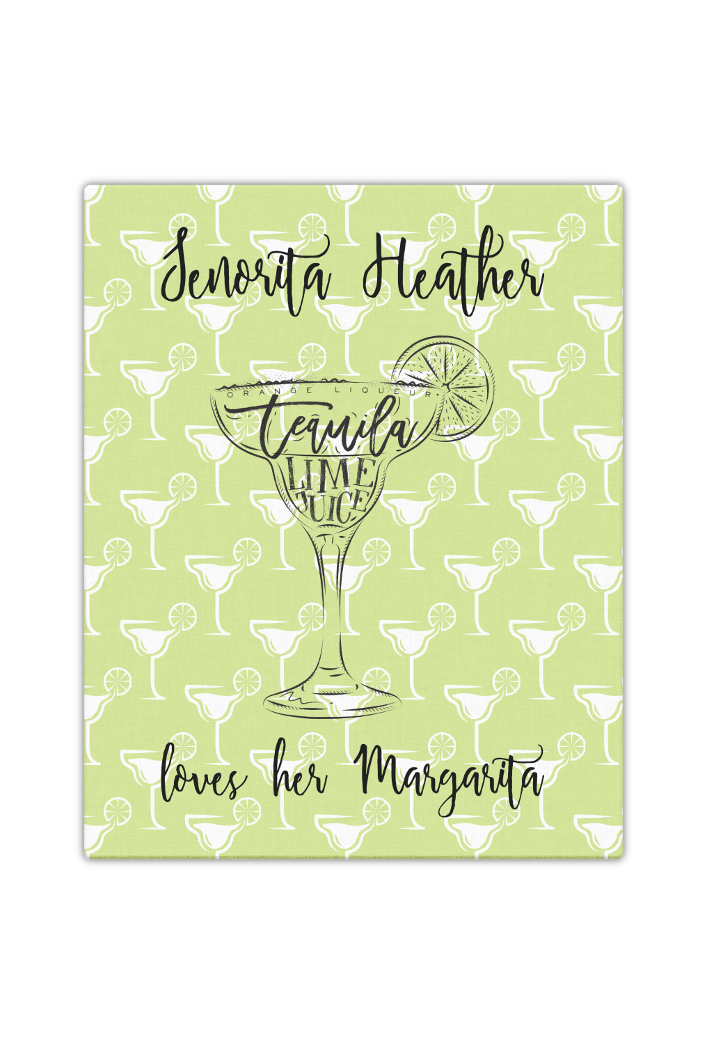 This margarita design has a lovely black illustration of a margarita glass with text inside saying "orange liqueur," "tequila," and "lime juice." Above and below this graphic is where your personalization goes. The pattern behind the graphic has a simpler margarita glass that is a light green while the rest of the pattern is a light lime green. This is a fun design to put on your beach, pool, or kitchen accessories.