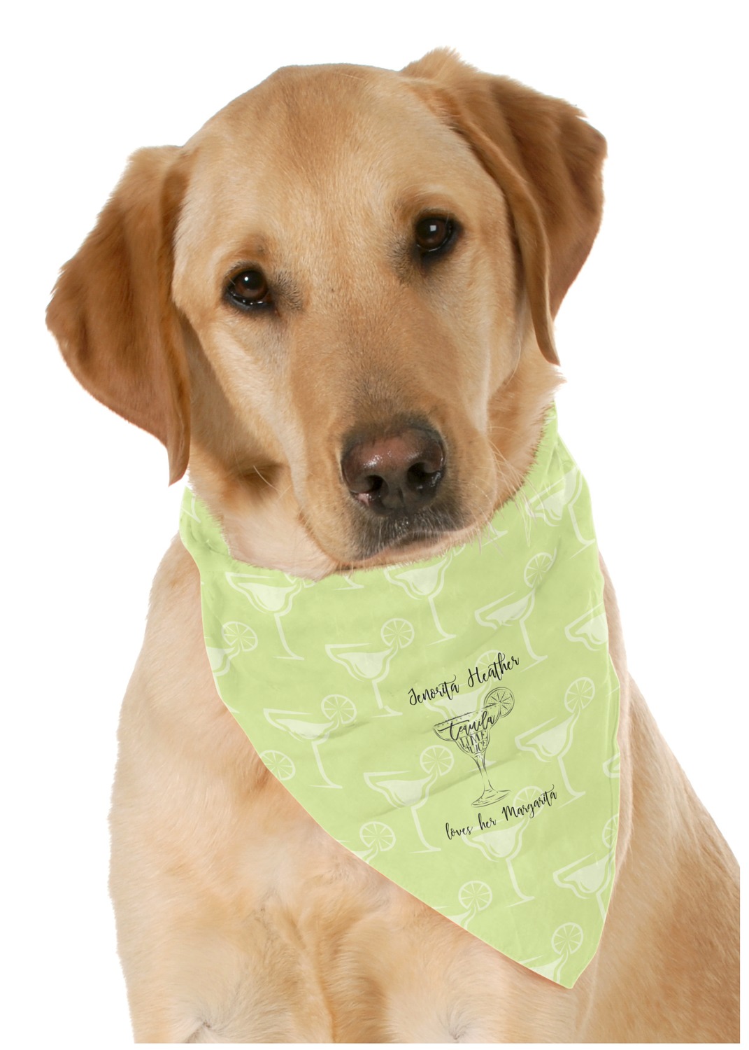 This beautiful pet bandana really is the perfect accessory. It is made from a silky feeling polyester and measures at approximately 23" x 23". Your personalization will be printed on a diagonal, so that you are able to read the personalization when folded into a triangle. This bandana fits best on large dogs, but can be folded smaller if there is no personalized text to fit smaller pets.