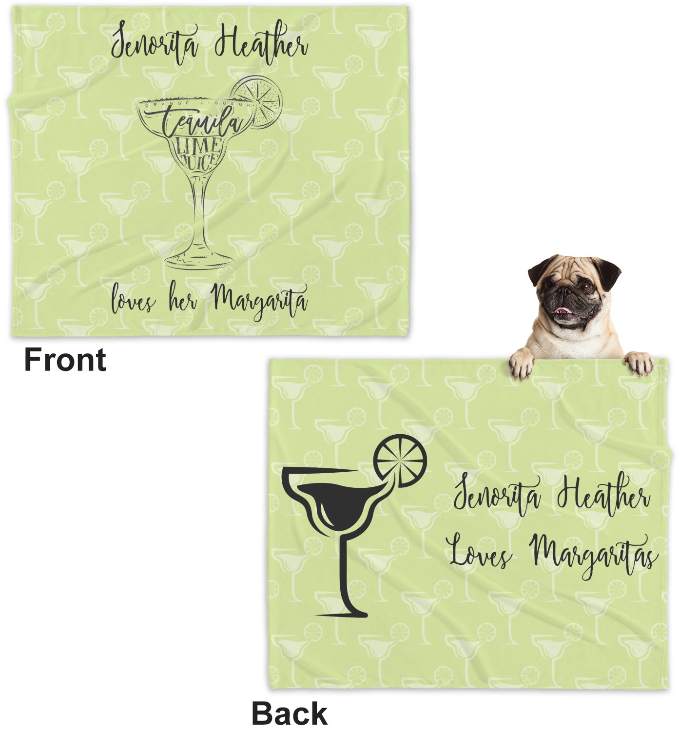 These dog blankets are crafted from a gentle, soft-to-the-touch, minky material. We print your customizations, either matching or differing, on both the top and underside of the blanket. These personalized dog blankets are available in two sizes: regular and large. Our regular size, at 40" x 30", accommodates small and some medium size dogs. At 60" x 50", our large dog blanket is a better fit for bigger breeds. Though specialized for dogs, these blankets still make a thoughtful gift for your favorite feline, or any other pet in mind!