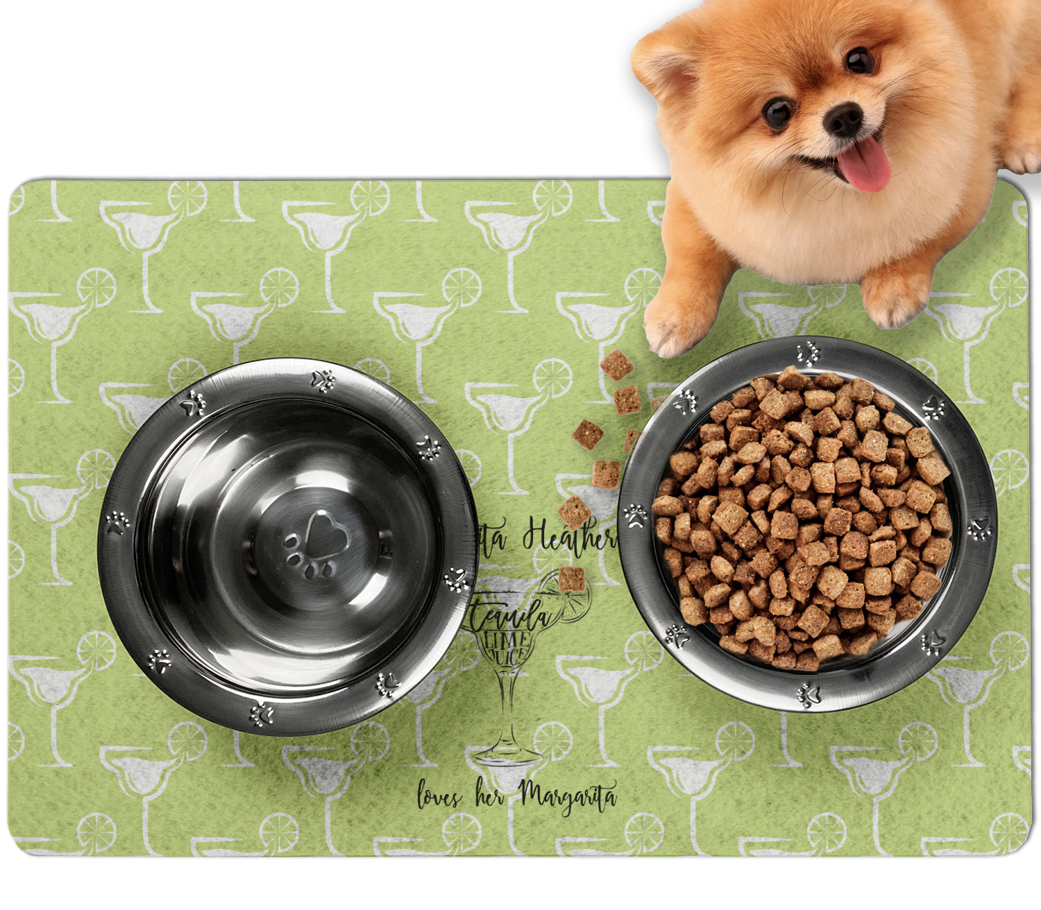 This dog bowl mat, fabricated from polyester, proudly displays your customized design on its top, while its bottom includes a non-slip rubber. This feature allows it to remain firmly in place, even when your dog spills his/her water. With 3 sizes available (18" x 12", 24" x 18", 30" x 24"), the pet food mat has ample space for both a food and water bowl for any sized dogs. Though specified for dogs' use, these mats are also a splendid option for cats.