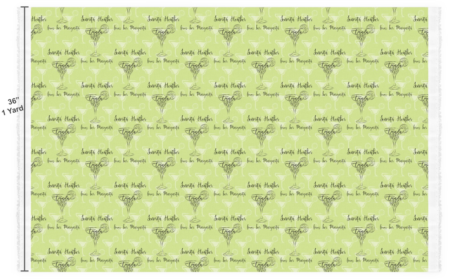 We offer four different personalized fabrics that you choose from, so that you may find the one that suits you and your projects needs. While each fabric has a slightly different width, you can order each fabric up to 10 yards, with the minimum for the order being 1 yard.