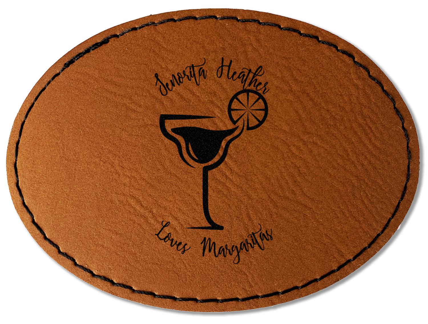 Our leather patches come in 4 different shapes - Square (3" x 3"), Round (3" x 3"), Oval (3.5" x 2.5"), Rectangle (3.5" x 2.5") and a beautiful rich brown rawhide or cognac color.