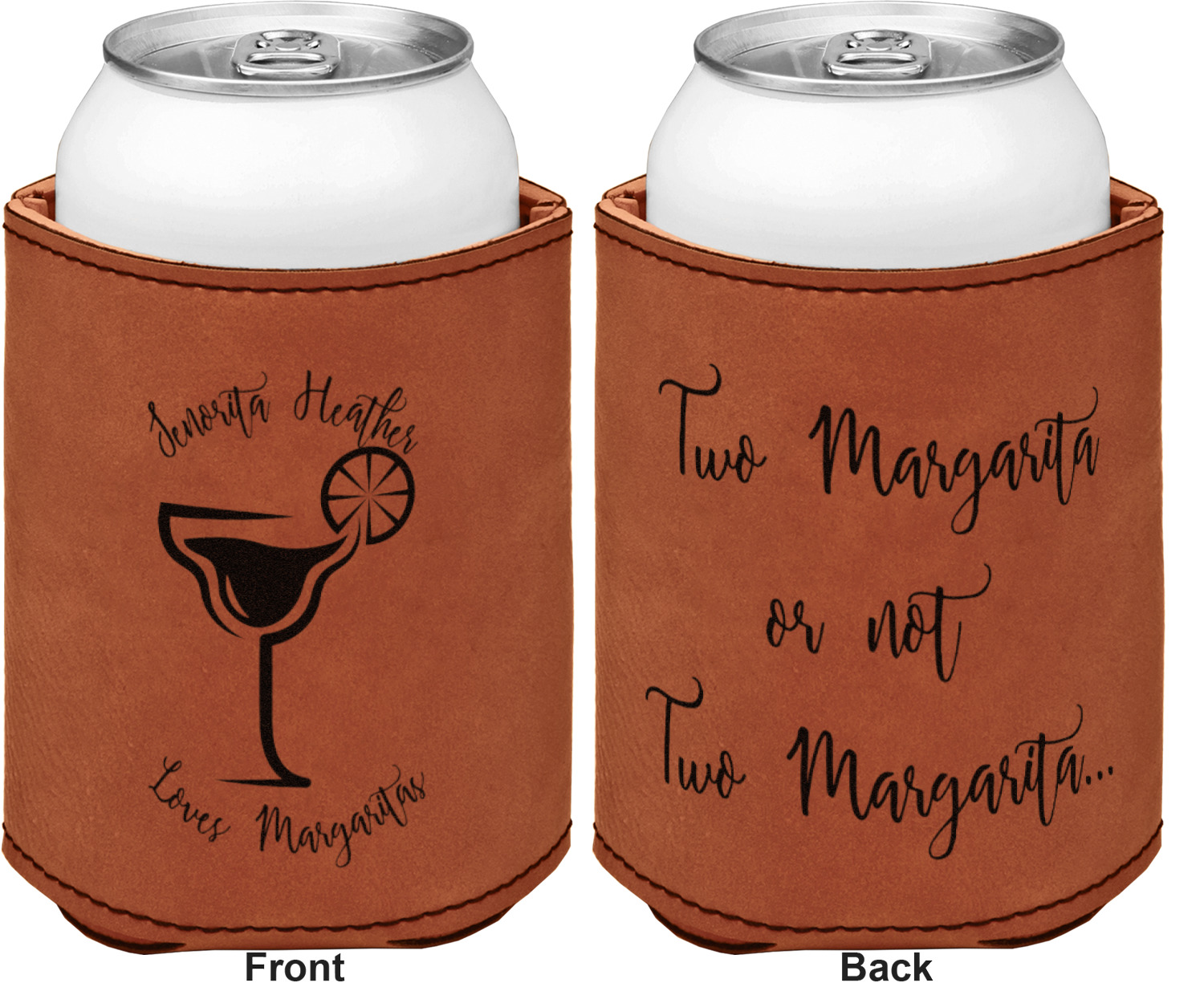 This can sleeve is made from a cognac-brown leatherette and stitched with a sturdy, black thread. A slim padding lines the inside of your can sleeve to allow for a better fit once your drink is inserted. The sleeve itself measures at 4 by 4.5 inches, allowing this custom can sleeve to accommodate most canned drinks. Your personalized design can be engraved on the front and back, or solely the front. When laser-engraved, your design appears as a black coloration which contrasts the leatherette nicely.