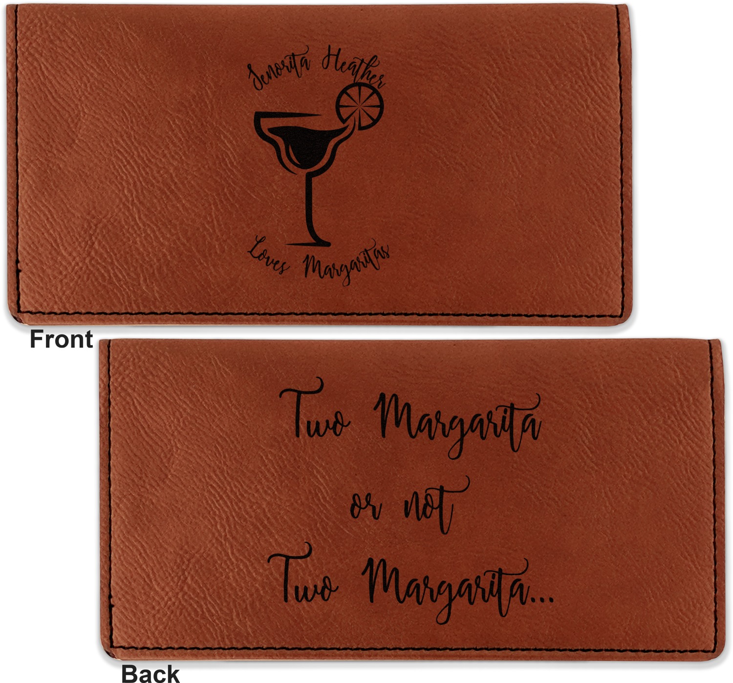 Go into our design center to start personalizing. Your checkbook cover will be laser engraved, making the graphic or text a black color. Choose a fun saying, monogram, or font to go on your checkbook cover. You have the opportunity to do it double or single sided.