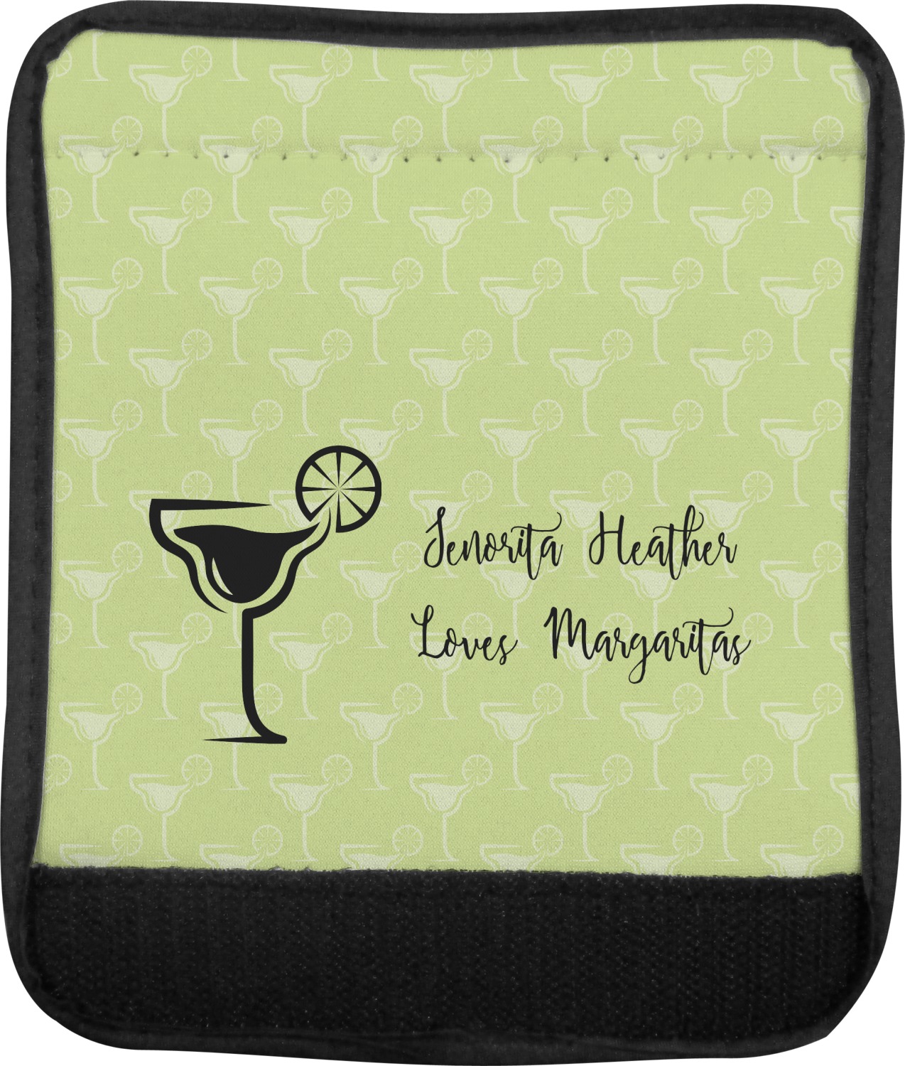 This margarita design has a lovely black illustration of a margarita glass with text inside saying "orange liqueur," "tequila," and "lime juice." Above and below this graphic is where your personalization goes. The pattern behind the graphic has a simpler margarita glass that is a light green while the rest of the pattern is a light lime green. This is a fun design to put on your beach, pool, or kitchen accessories.