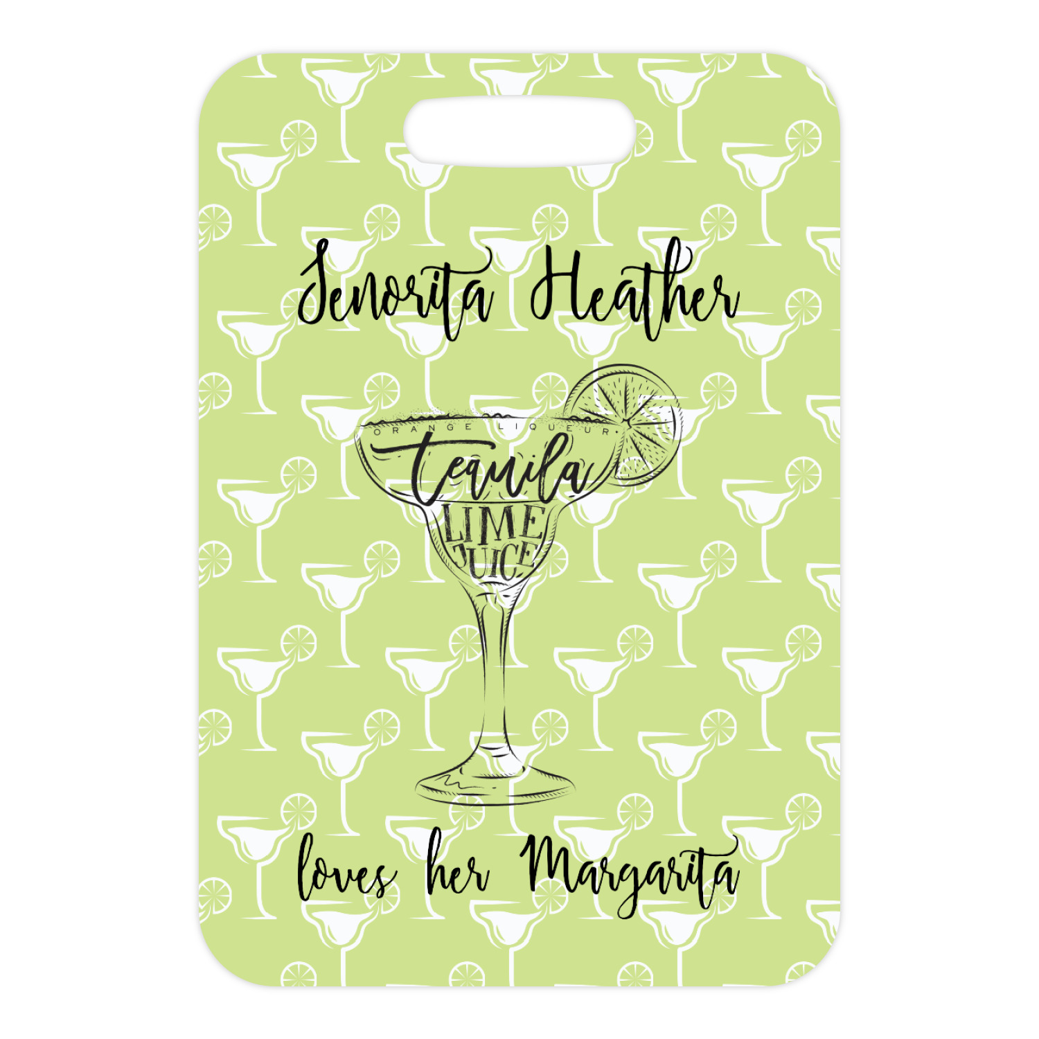 This margarita design has a lovely black illustration of a margarita glass with text inside saying "orange liqueur," "tequila," and "lime juice." Above and below this graphic is where your personalization goes. The pattern behind the graphic has a simpler margarita glass that is a light green while the rest of the pattern is a light lime green. This is a fun design to put on your beach, pool, or kitchen accessories.