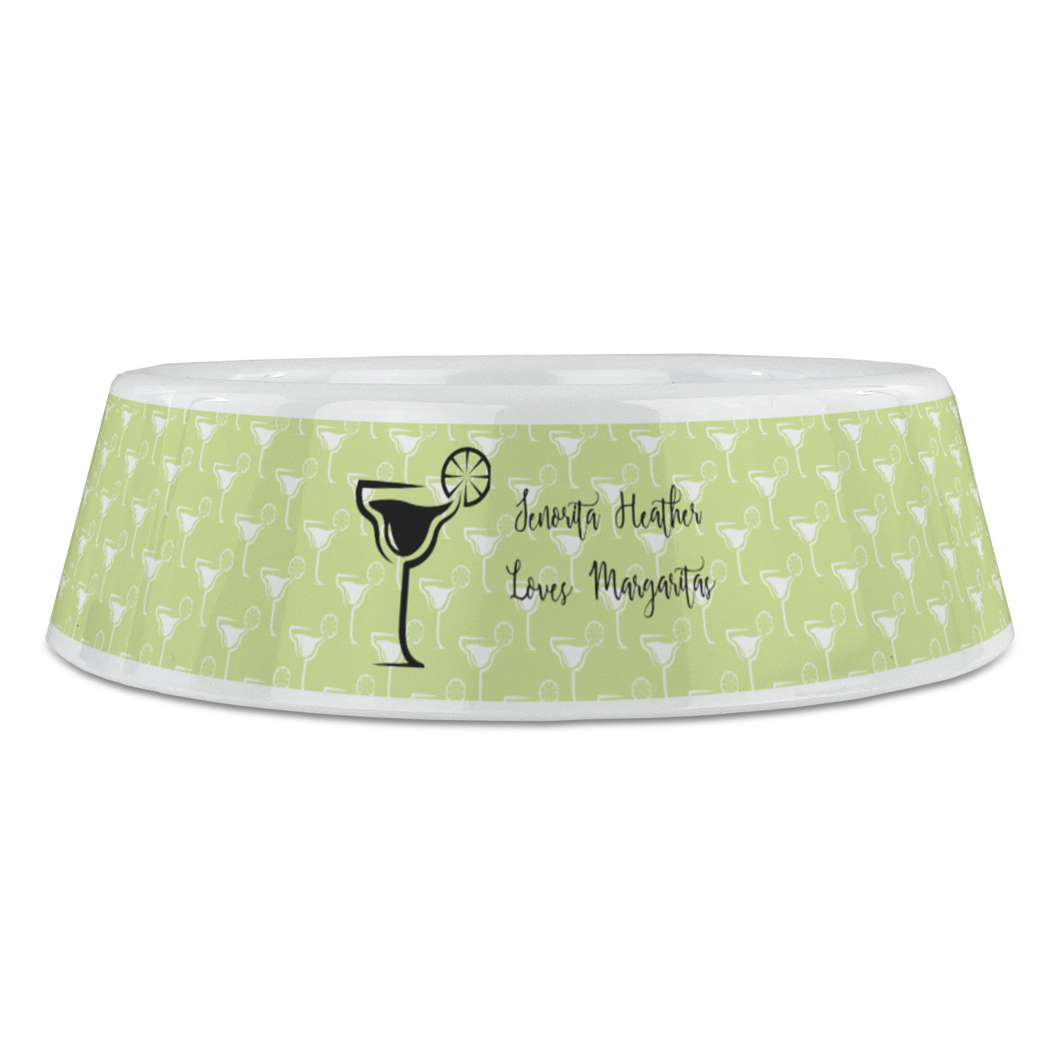 This margarita design has a lovely black illustration of a margarita glass with text inside saying "orange liqueur," "tequila," and "lime juice." Above and below this graphic is where your personalization goes. The pattern behind the graphic has a simpler margarita glass that is a light green while the rest of the pattern is a light lime green. This is a fun design to put on your beach, pool, or kitchen accessories.