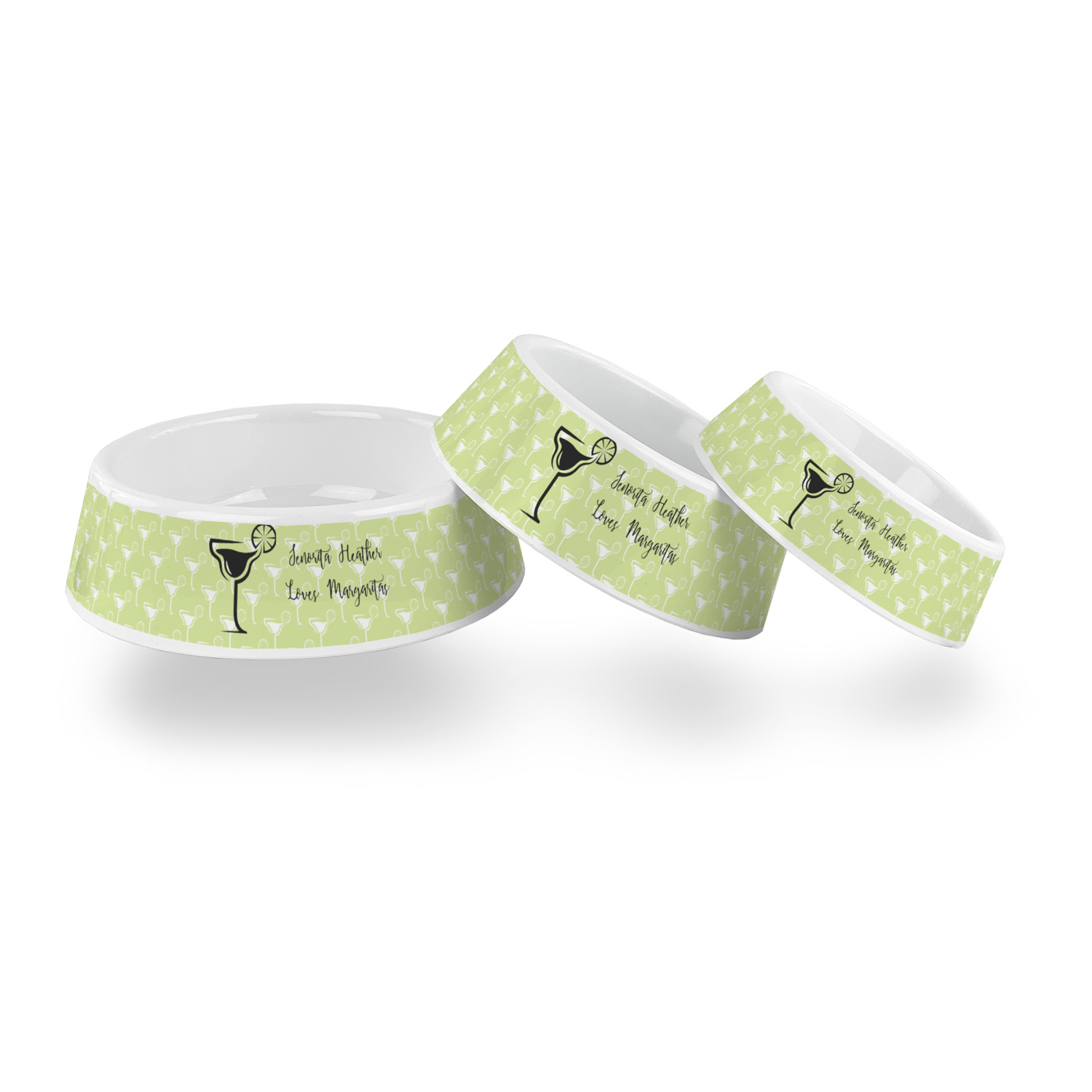 This margarita design has a lovely black illustration of a margarita glass with text inside saying "orange liqueur," "tequila," and "lime juice." Above and below this graphic is where your personalization goes. The pattern behind the graphic has a simpler margarita glass that is a light green while the rest of the pattern is a light lime green. This is a fun design to put on your beach, pool, or kitchen accessories.