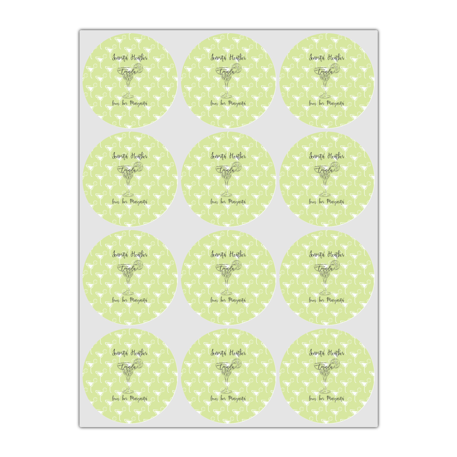 This margarita design has a lovely black illustration of a margarita glass with text inside saying "orange liqueur," "tequila," and "lime juice." Above and below this graphic is where your personalization goes. The pattern behind the graphic has a simpler margarita glass that is a light green while the rest of the pattern is a light lime green. This is a fun design to put on your beach, pool, or kitchen accessories.