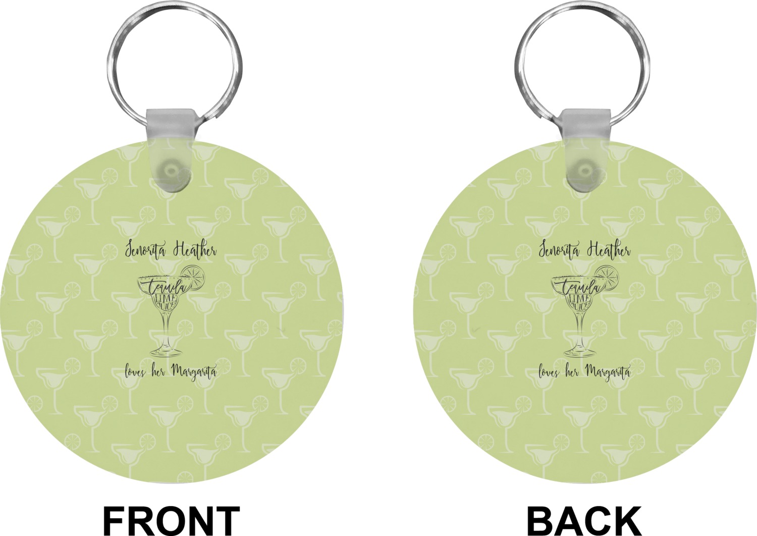 Our personalized keychains attach to the included metal, split key ring with a plastic, removable snap. Since a metal ring is included with your purchase, you have the liberty to keep your keys together on the ring, with or without your unique keychain. We offer this keychain in three different shapes: circle, heart, or diamond. We print your personalized design(s) on both sides of the key chain, and the surface has a glossy, reflective finish that only emphasizes your design. Each keychain is approximately 2.25 by 2.25 inches.