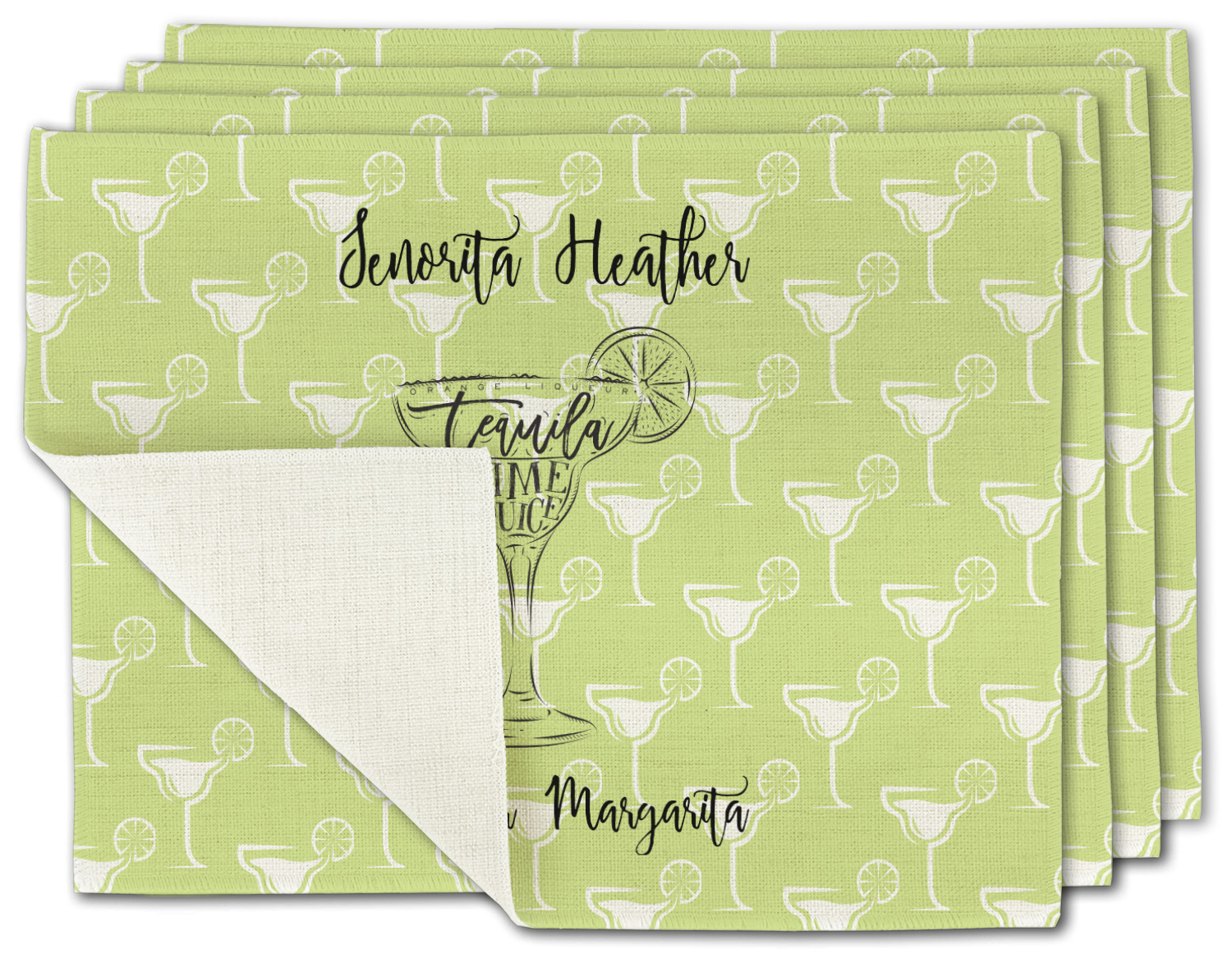 This margarita design has a lovely black illustration of a margarita glass with text inside saying "orange liqueur," "tequila," and "lime juice." Above and below this graphic is where your personalization goes. The pattern behind the graphic has a simpler margarita glass that is a light green while the rest of the pattern is a light lime green. This is a fun design to put on your beach, pool, or kitchen accessories.