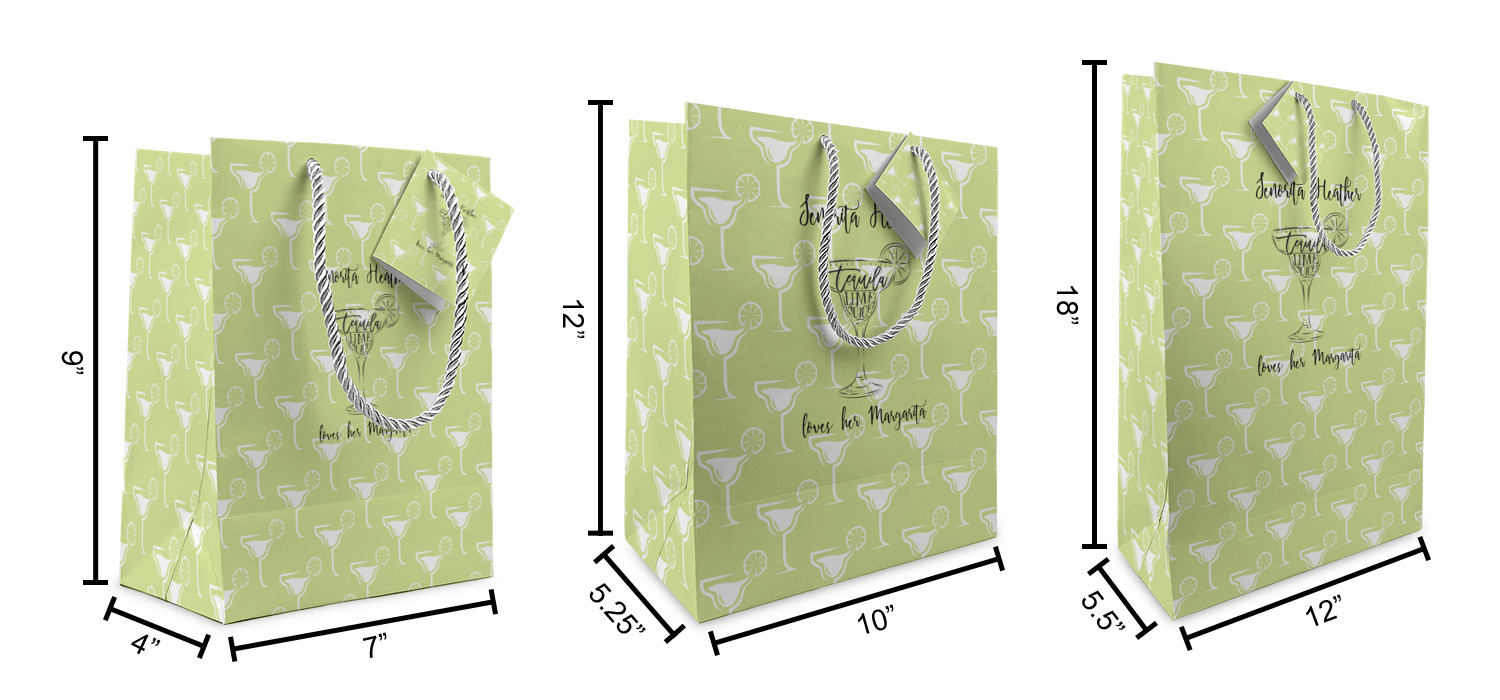 These custom gift bags come in your choice of 3 sizes. Their dimensions are below: