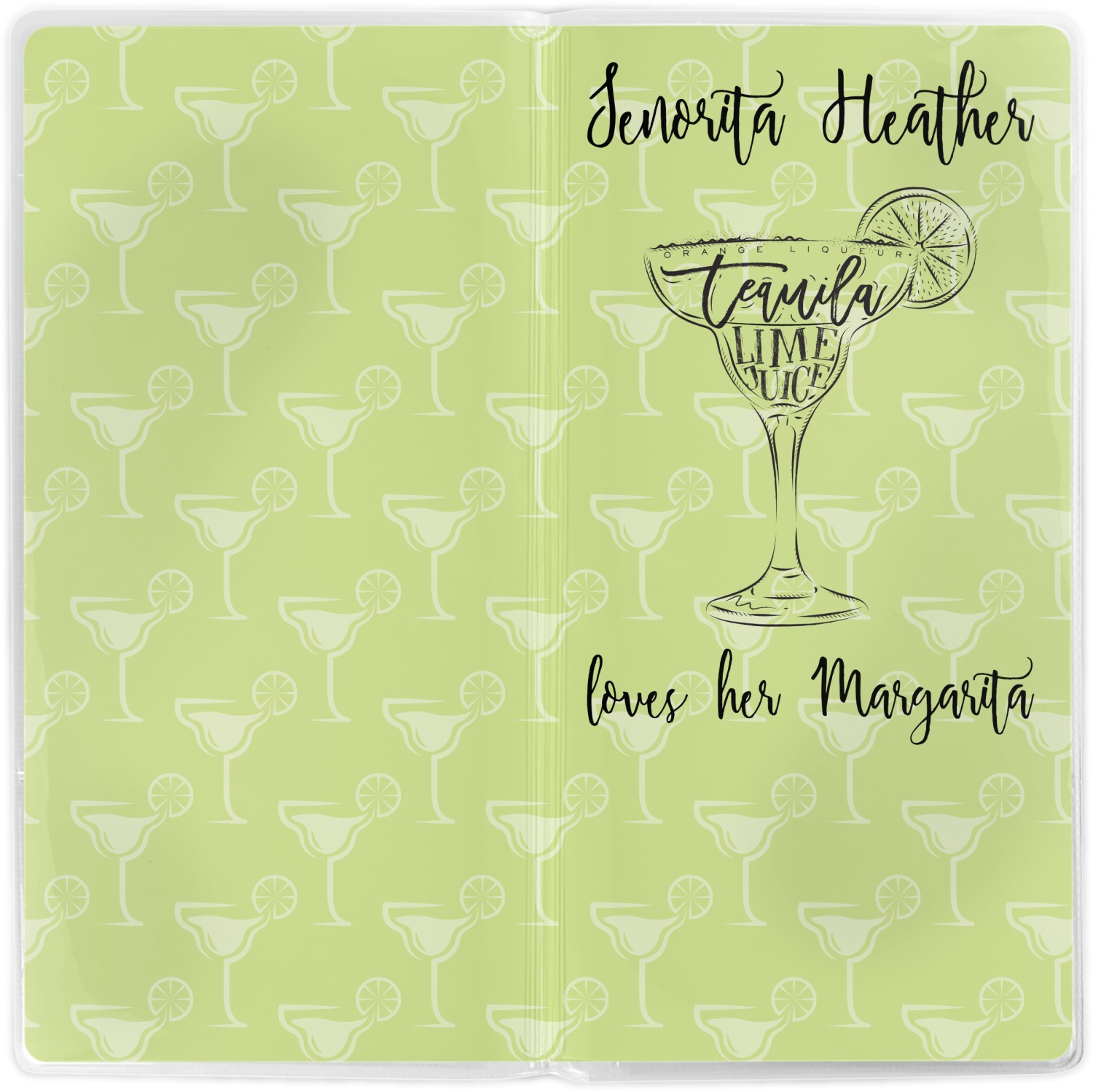 This margarita design has a lovely black illustration of a margarita glass with text inside saying "orange liqueur," "tequila," and "lime juice." Above and below this graphic is where your personalization goes. The pattern behind the graphic has a simpler margarita glass that is a light green while the rest of the pattern is a light lime green. This is a fun design to put on your beach, pool, or kitchen accessories.