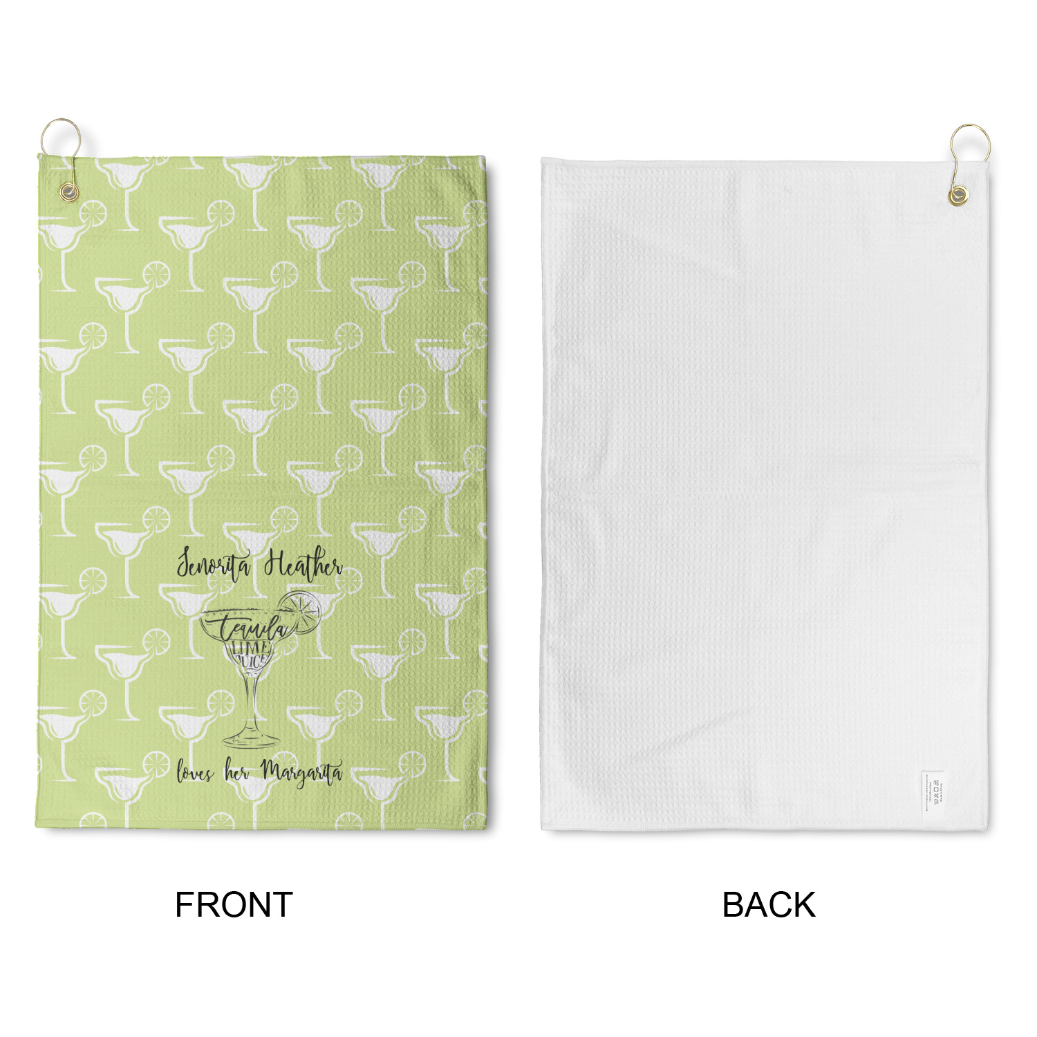 Measuring approximately 16in wide and 24in tall these towels are the perfect size for your golf bag or on your cart. The waffle weave texture makes a great texture for cleaning clubs, balls and anything else you need to clean during your golf game.