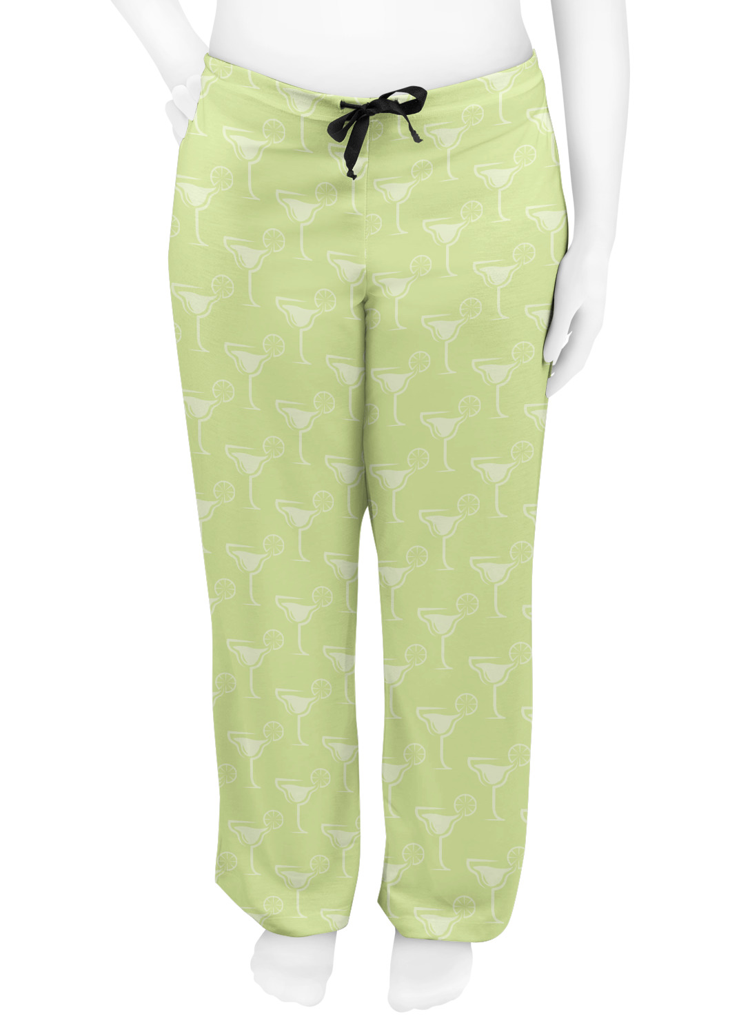 This margarita design has a lovely black illustration of a margarita glass with text inside saying "orange liqueur," "tequila," and "lime juice." Above and below this graphic is where your personalization goes. The pattern behind the graphic has a simpler margarita glass that is a light green while the rest of the pattern is a light lime green. This is a fun design to put on your beach, pool, or kitchen accessories.