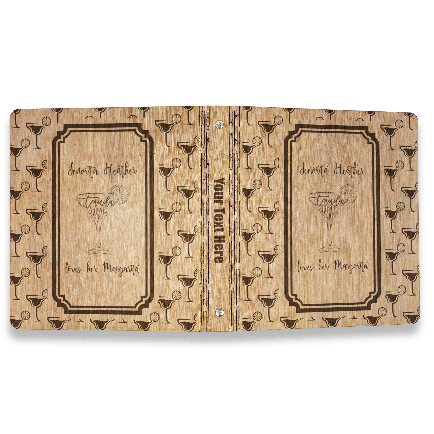 Made from premium hardwood, these are laser engraved then polished with wax to give a nice sheen and smooth feel to the product. The inside of the binders are finished with a faux leather material which is bonded to the inside of the wood to strengthen the wood and give the inside the same refined finish. The rustic brown and gold leather material adds a nice classic touch to the binders.