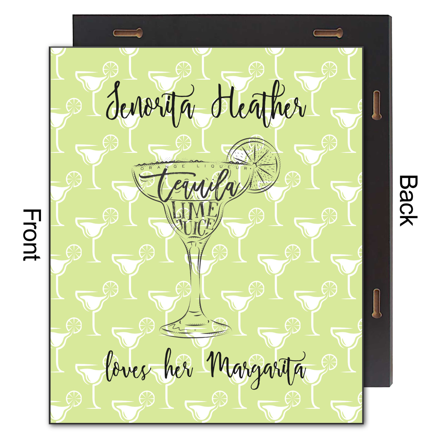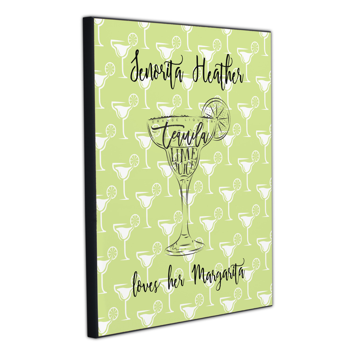 This margarita design has a lovely black illustration of a margarita glass with text inside saying "orange liqueur," "tequila," and "lime juice." Above and below this graphic is where your personalization goes. The pattern behind the graphic has a simpler margarita glass that is a light green while the rest of the pattern is a light lime green. This is a fun design to put on your beach, pool, or kitchen accessories.