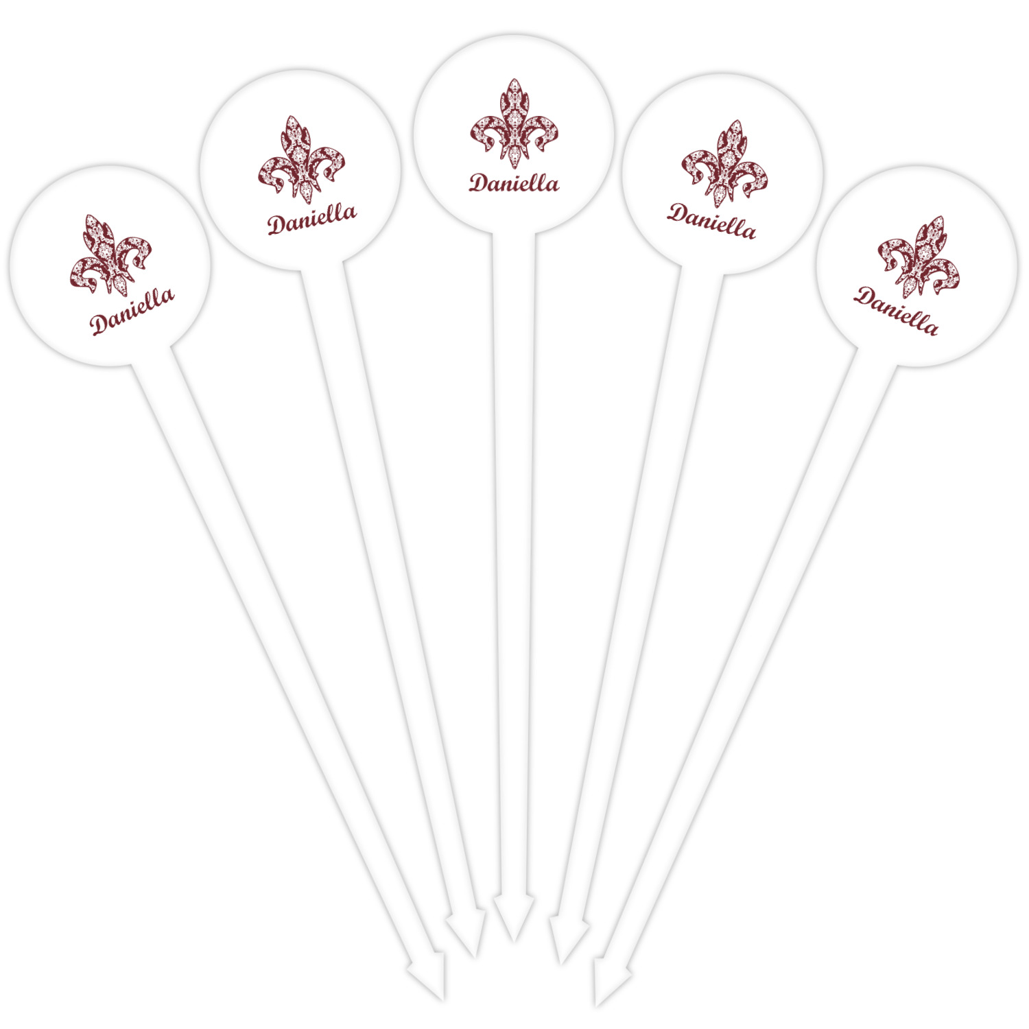 Our plastic cocktail picks have a round disc on top that is printed in full color with your event theme, colors, your logo, your photo, names, initials, monograms etc.