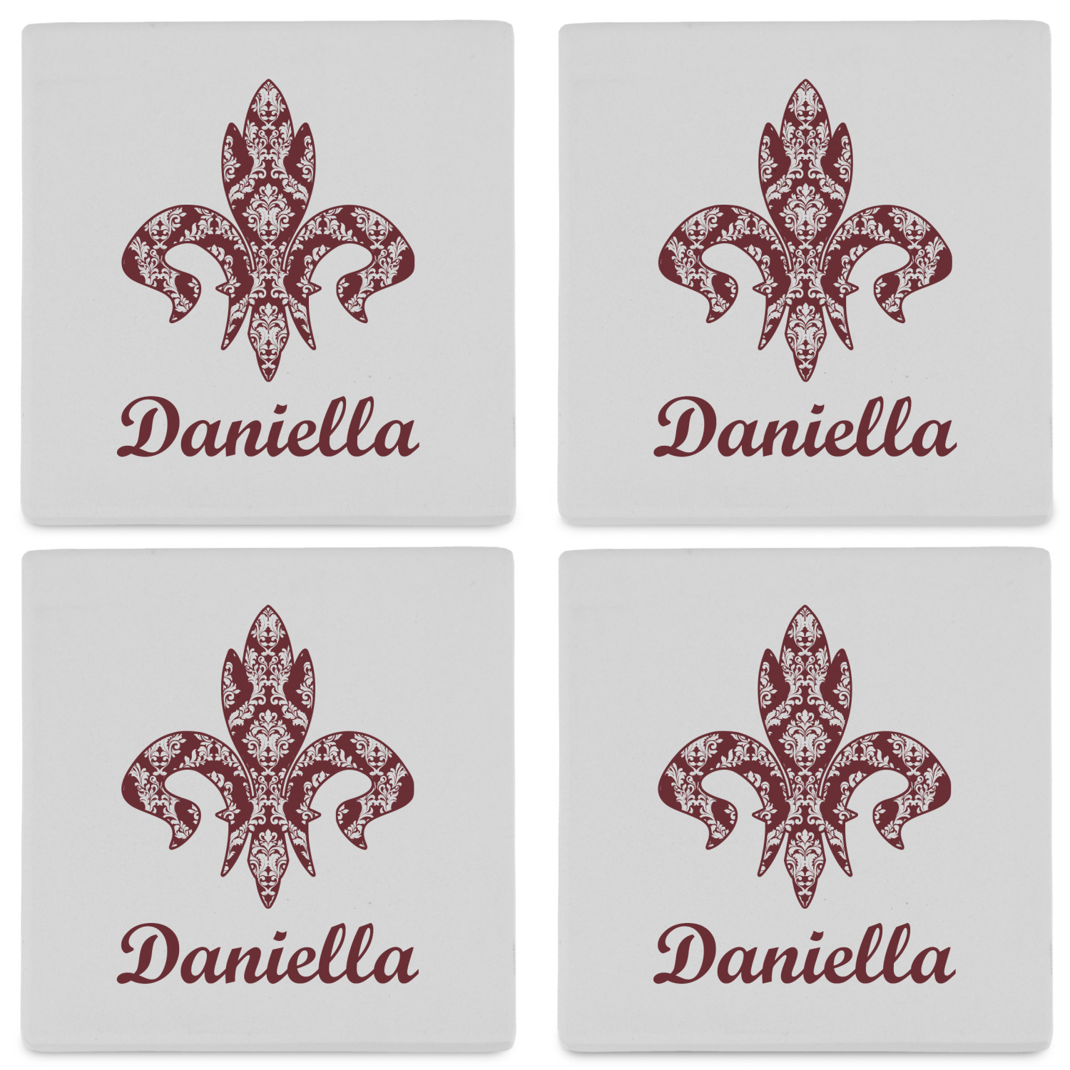 By default, the 4 coasters all have the same design on them, however, you can change that and have a different design on each one of the 4 coasters. The choice is yours.
