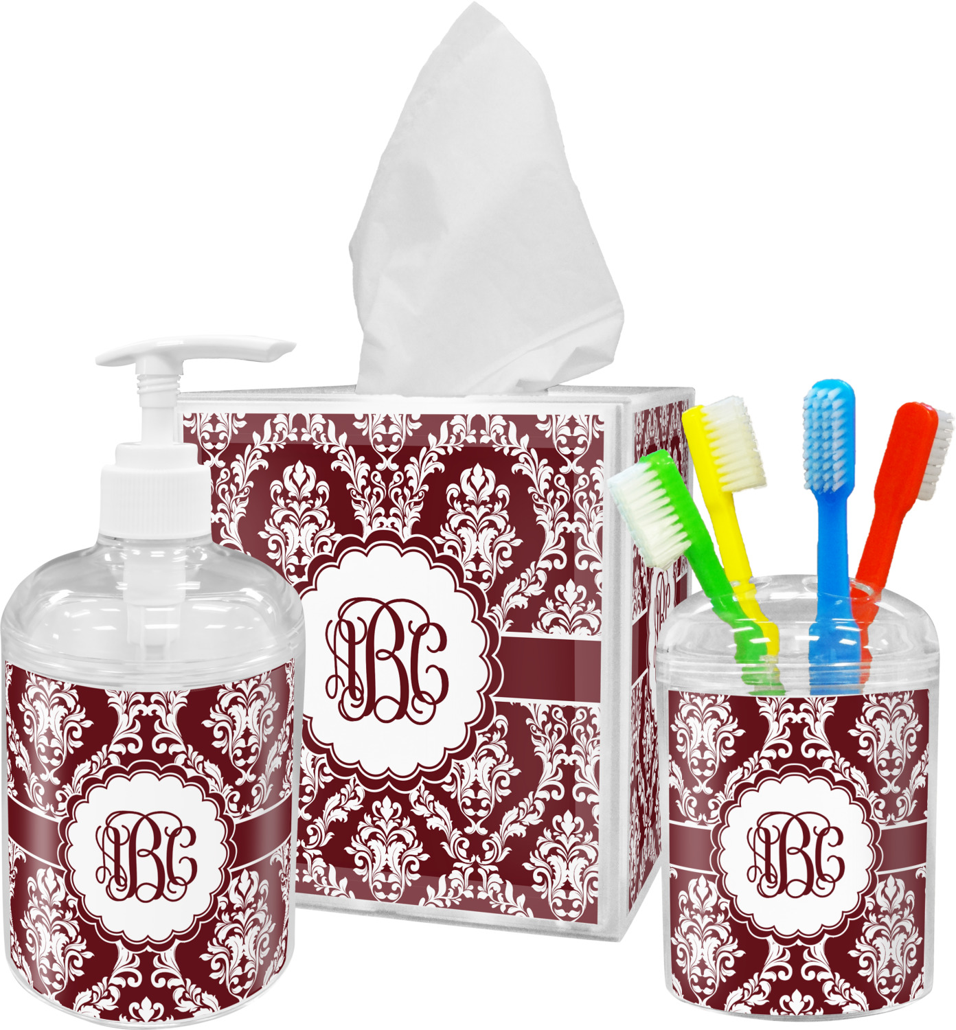 We also have coordinating bathroom accessories like personalized soap dispensers and personalized tissue box covers. Pair them together to create a bathroom accessory set!!