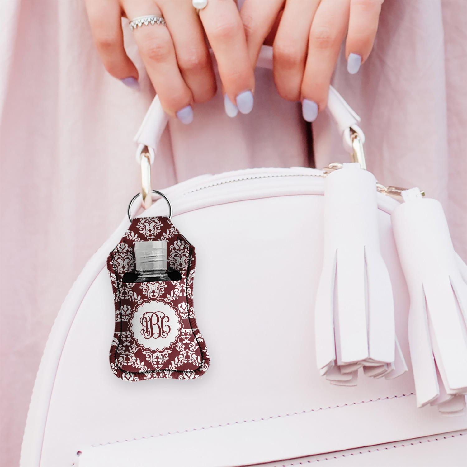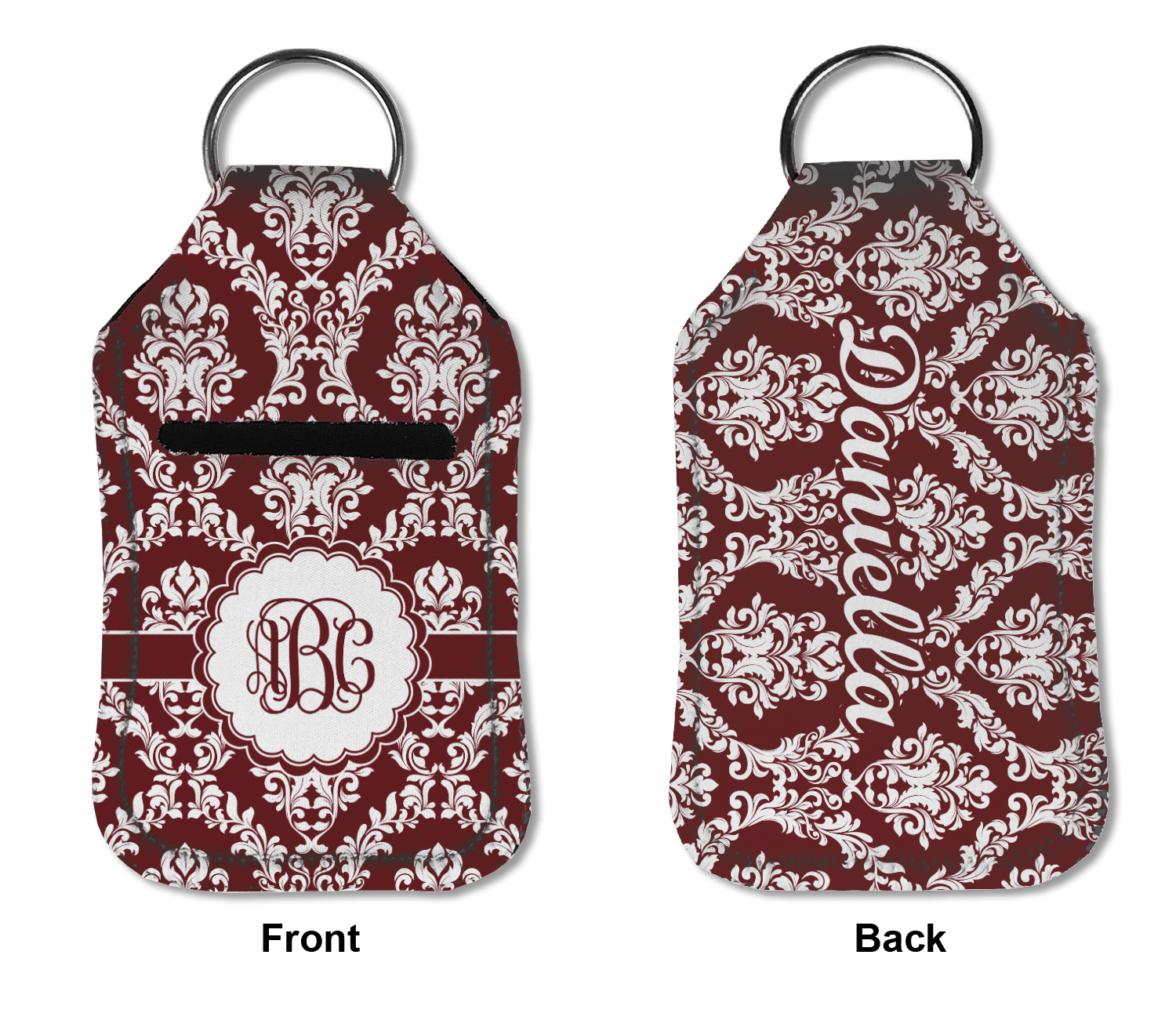 Each hand sanitizer holder comes with its own empty travel-sized, refillable hand sanitizer sure to fit snug in your customized sanitizer case! Our hand sanitizer cases are a durable, yet soft neoprene material sure to last any daily activities or travel agenda. Customize and personalize a hand sanitizer bottle holder with one of our two sizes - small (4.25" x 2.25") or large (5.5" x 2.5"). Each travel sanitizer holder comes with a keyring for attachment on bags, keys, or more!