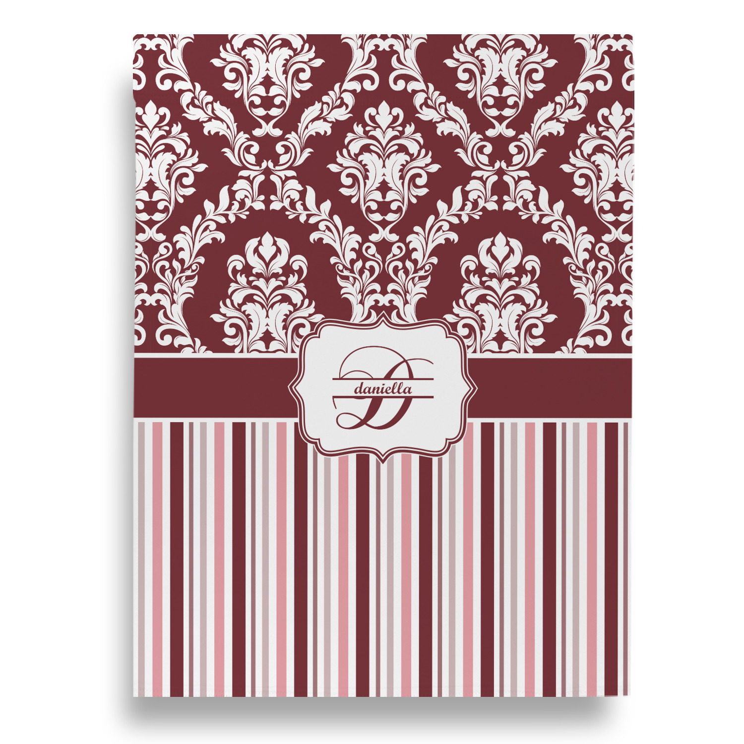 Love it? Then just change the initials for your monogram and you are done. Feeling creative? Browse our system for the other damask patterns or get even more adventurous and browse through all the patterns in our system to find the one you like. You are also able to custom the ribbon, the label and of course the personalization style. We have many different styles to choose from. So browse around and see what you come up with!