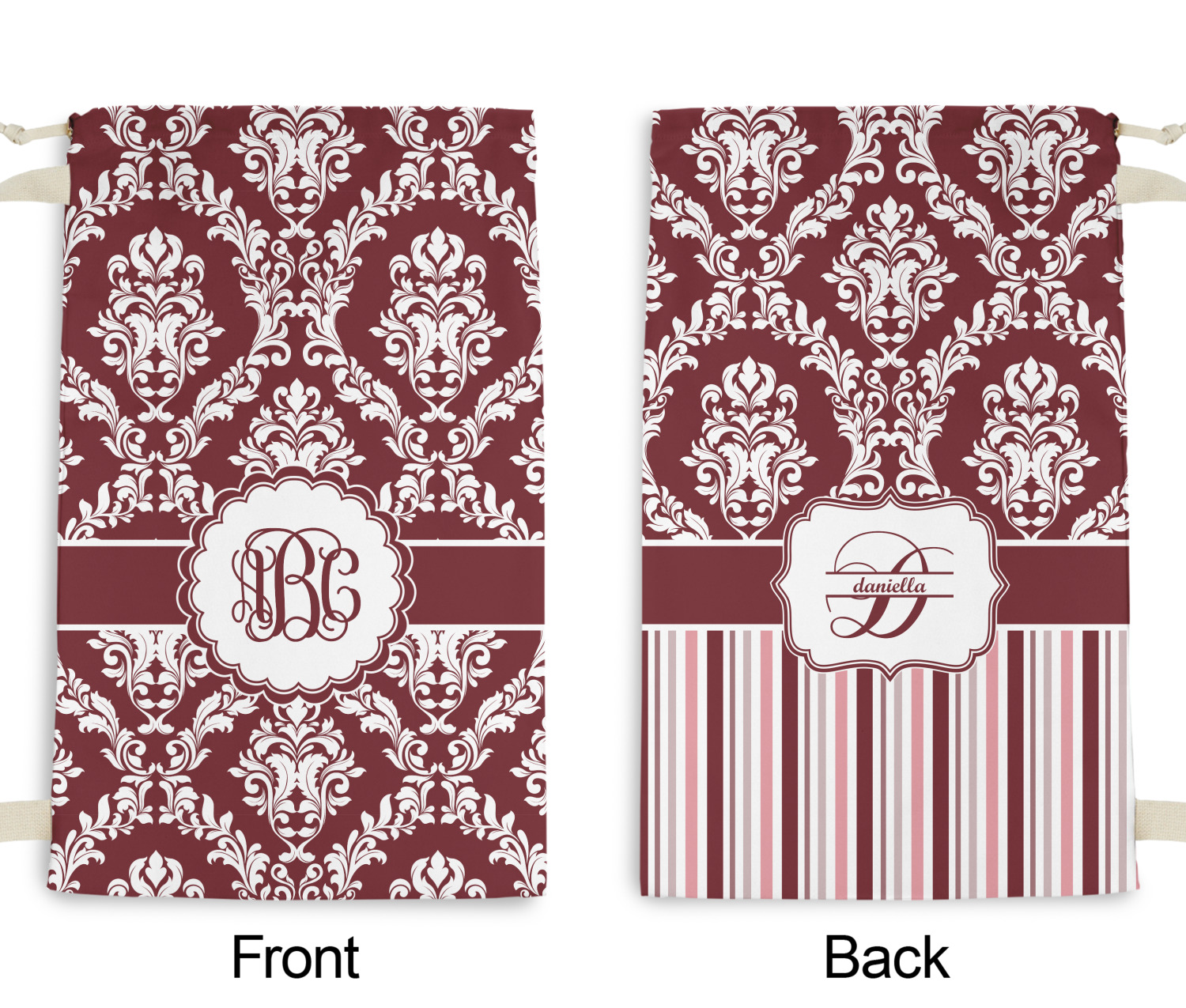 Love it? Then just change the initials for your monogram and you are done. Feeling creative? Browse our system for the other damask patterns or get even more adventurous and browse through all the patterns in our system to find the one you like. You are also able to custom the ribbon, the label and of course the personalization style. We have many different styles to choose from. So browse around and see what you come up with!