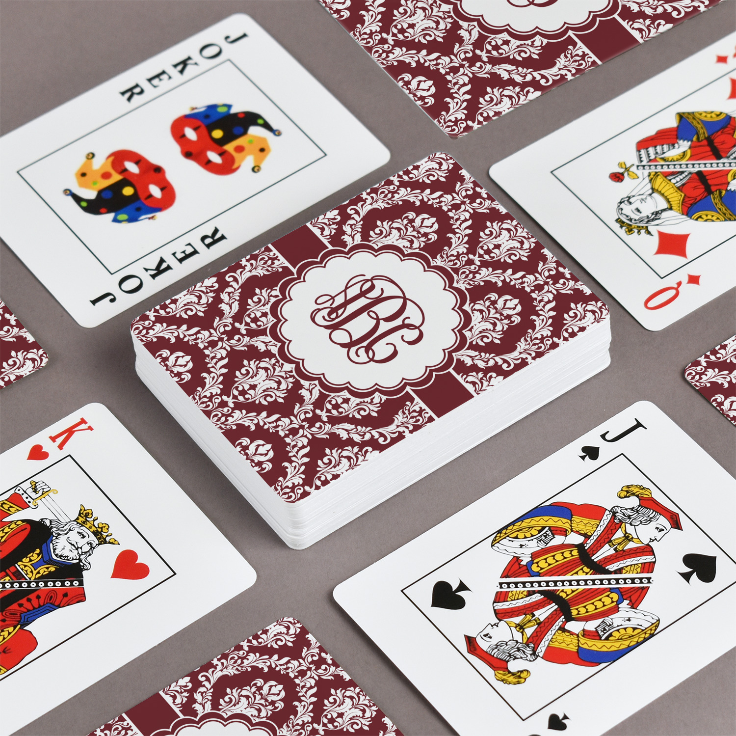 Our playing cards are perfect for family game nights or poker nights. A deck of customized playing cards ups the level of fun & entertainment to your game or poker nights. Imagine playing cards customized to match the theme of your game room, or game night, or that special event, or occasion with gambling tables!