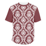 Maroon & White create a great combination. This simple, yet elegant design features our popular damask with a ribbon and an interlocking monogram in a scalloped label.