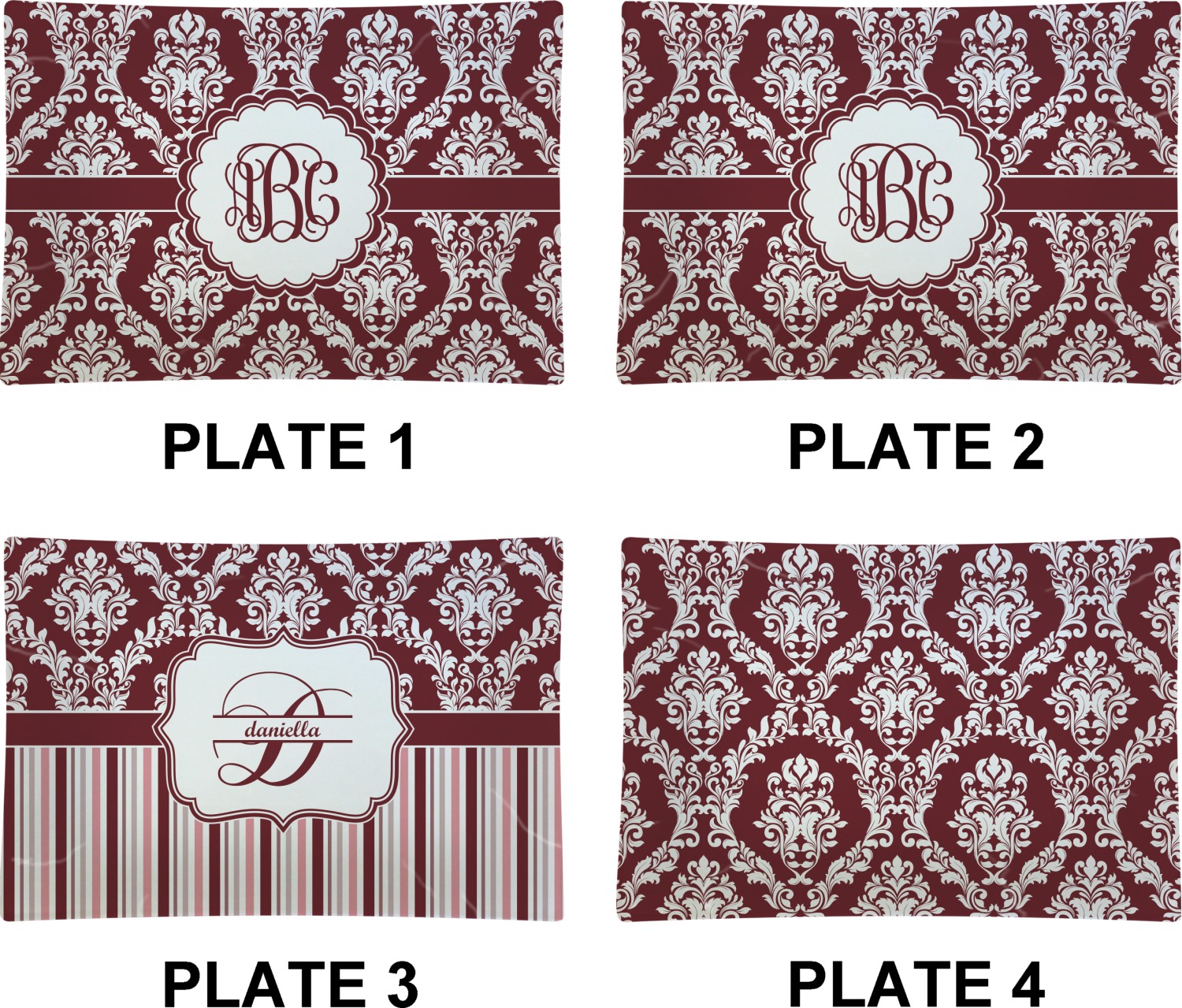 Love it? Then just change the initials for your monogram and you are done. Feeling creative? Browse our system for the other damask patterns or get even more adventurous and browse through all the patterns in our system to find the one you like. You are also able to custom the ribbon, the label and of course the personalization style. We have many different styles to choose from. So browse around and see what you come up with!