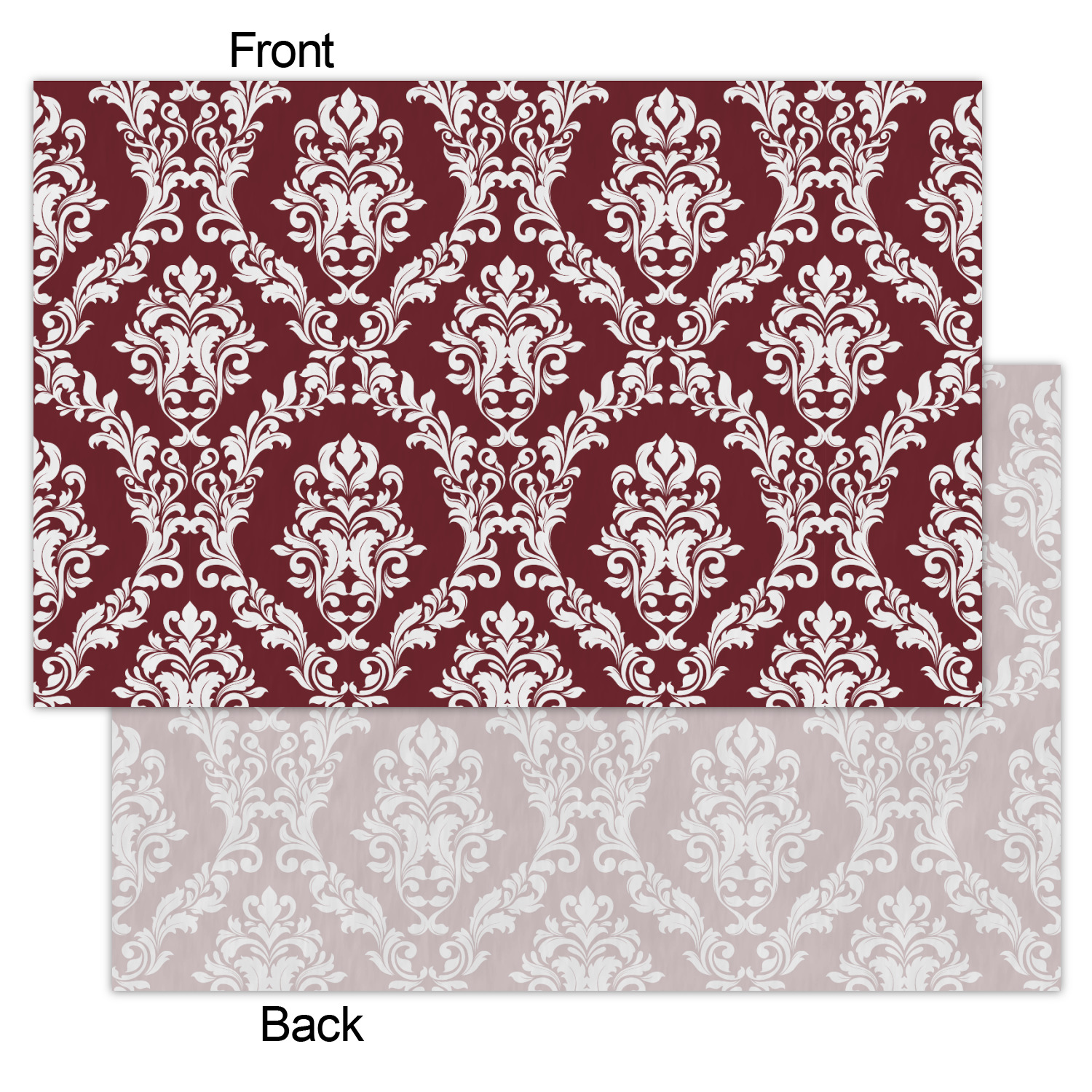 Maroon & White create a great combination. This simple, yet elegant design features our popular damask with a ribbon and an interlocking monogram in a scalloped label.