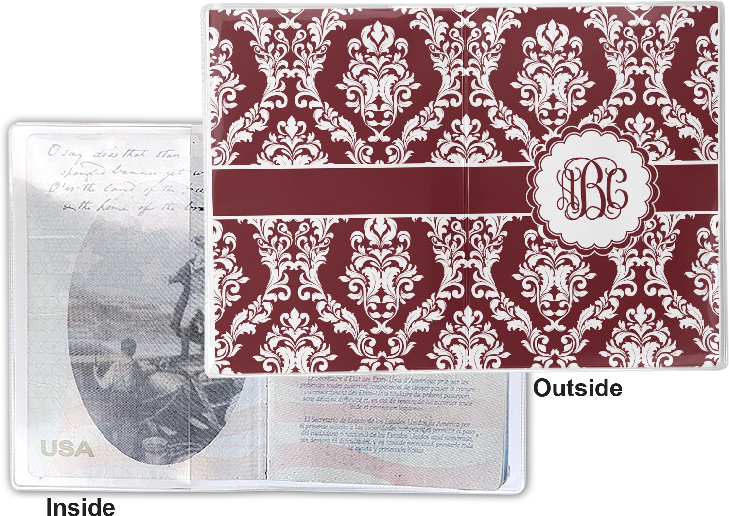 This cover is made of a sturdy clear vinyl with a personalized vinyl insert inside. There is a large and a small pocket on either side to hold the covers of your passport easily and firmly. The passport holder is approximately 7.5" x 5.25", the perfect size to snugly fit your passport. This slim cover is the perfect way to protect your passport without being one more bulky item you have to carry.