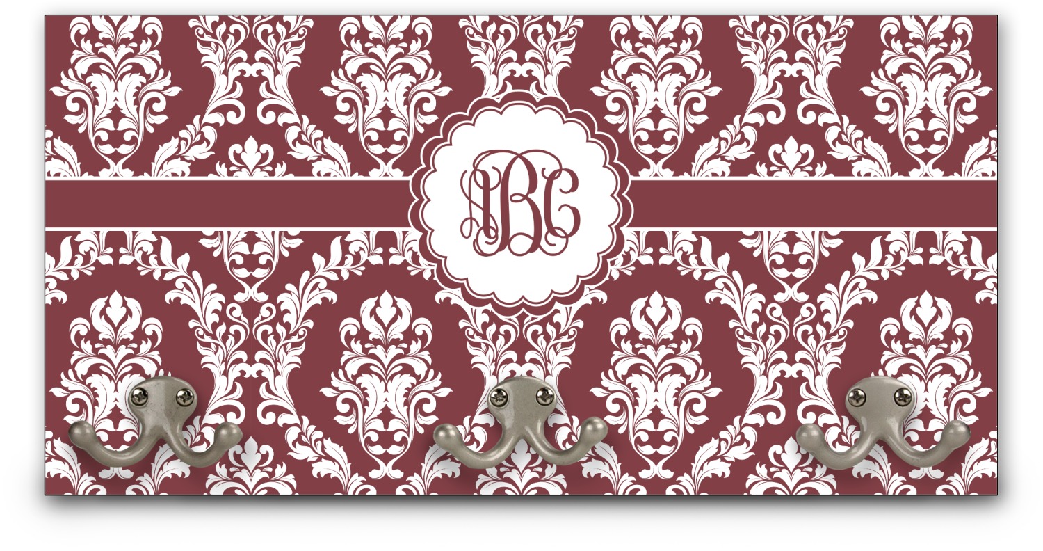 This coat rack is the perfect way to add some personality to your wall or entryway. The board is made of a strong maple that is approximately 16" x 8". The three 2-prong hooks are a sturdy metal that have three screws attaching them to the board. Your design is printed right onto the front of the board while the back and sides are a simple black.