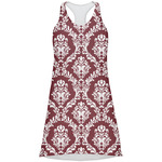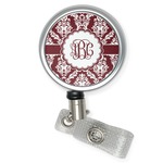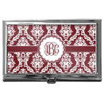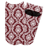 Maroon & White create a great combination. This simple, yet elegant design features our popular damask with a ribbon and an interlocking monogram in a scalloped label.