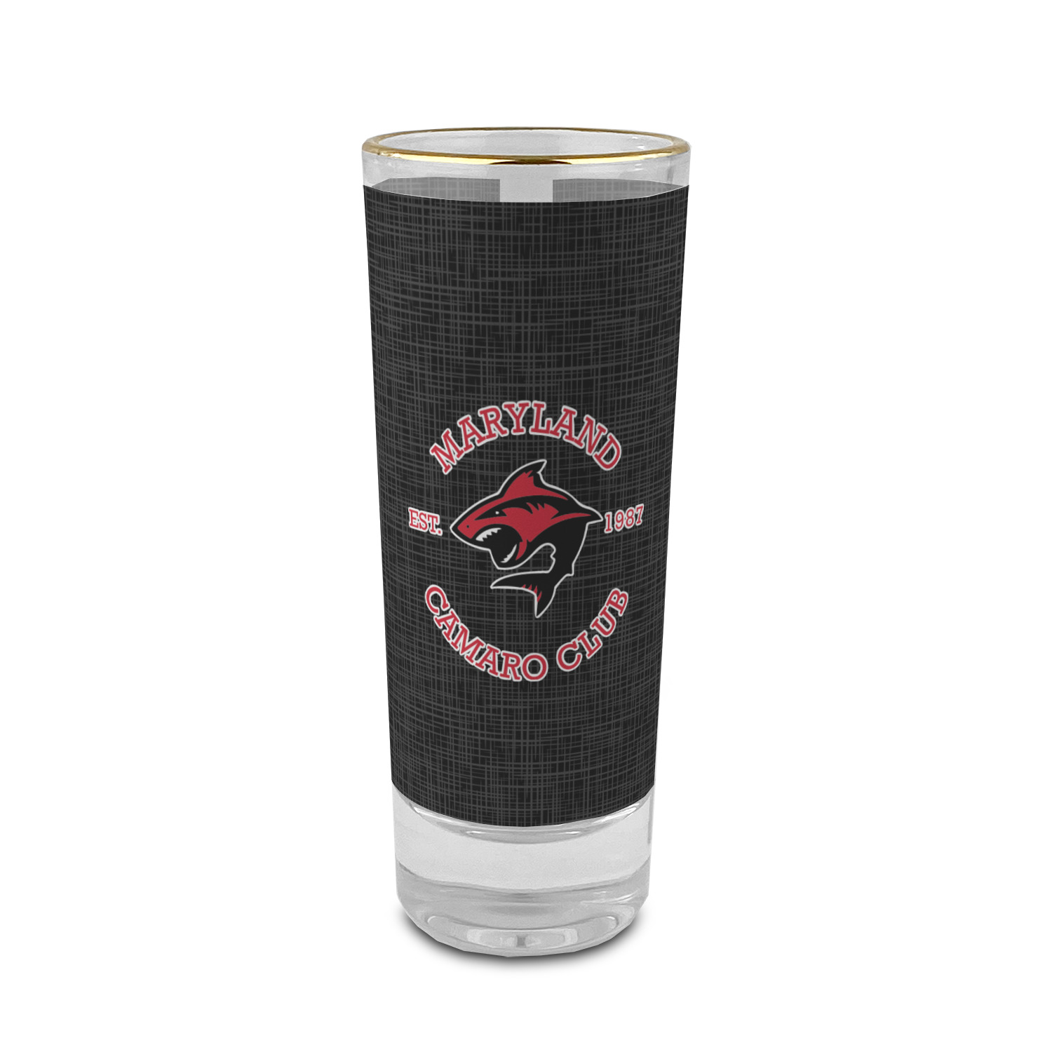 These glass shooter glasses are printed in full color with the design of your choice. These are a tall shooter 2 oz size and stand 4" tall. The print is a full wrap design to boldly display your personalization.