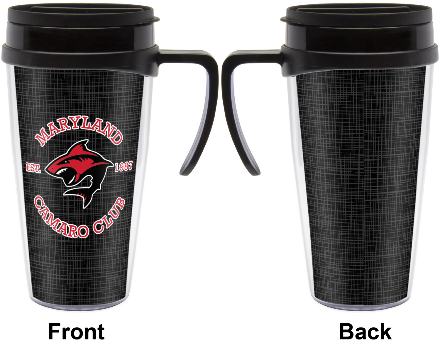 These thermal mugs are free of BPA, and insulated, to keep your drinks hot or cold. The black, snap on lid and the slider for sipping allows you to conveniently sip your drink without constantly worrying about a disastrous spill. We offer this mug with and without a handle, to better suit your needs. Each custom thermal mug holds up to 16 ounces of liquid and displays your customization on all sides on premium gloss media inserts.