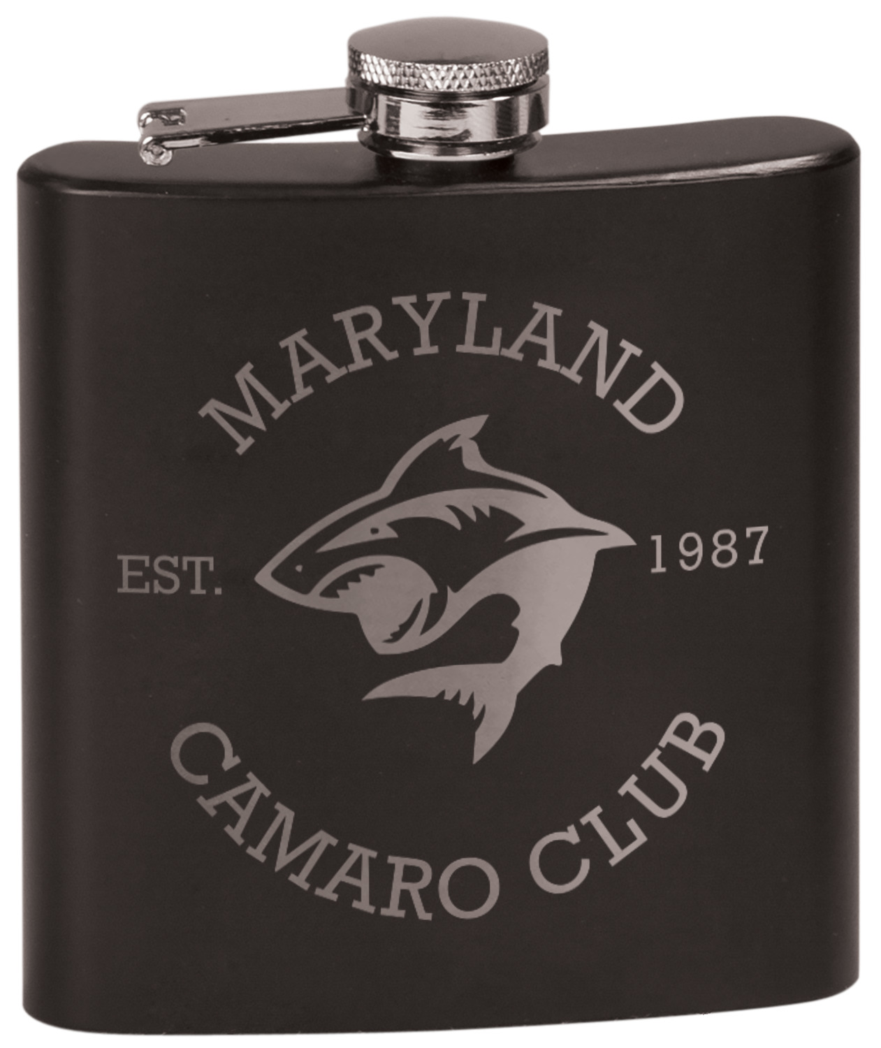 Built from a stainless steel and then covered with a black coating, this hip flask, has a very classy appearance. Similar to the standard flask, this stainless steel flask has the traditional curved shape for a snug fit in your palm. This flask set also includes a traditional screw and flip lid and liquid funnel in a gift box. At 4 by 4.5 inches, this flask can hold up to 6 ounces. Your personalized design is laser-engraved across the front of this flask.
