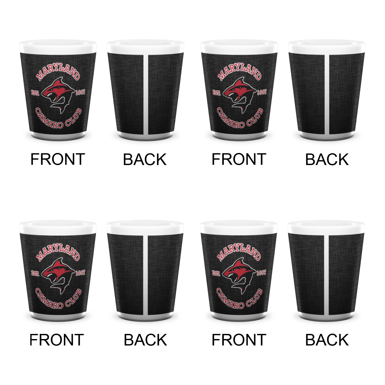 Made from ceramic these shot glasses are printed in full color with the design of your choice. These are a standard 1.5oz size and stand 2.25" tall. Available in a full white ceramic or a two-tone with a black color inside the shot glass. Buy a single or a set of 4, all of which can be designed separately to get you just what you want and need.