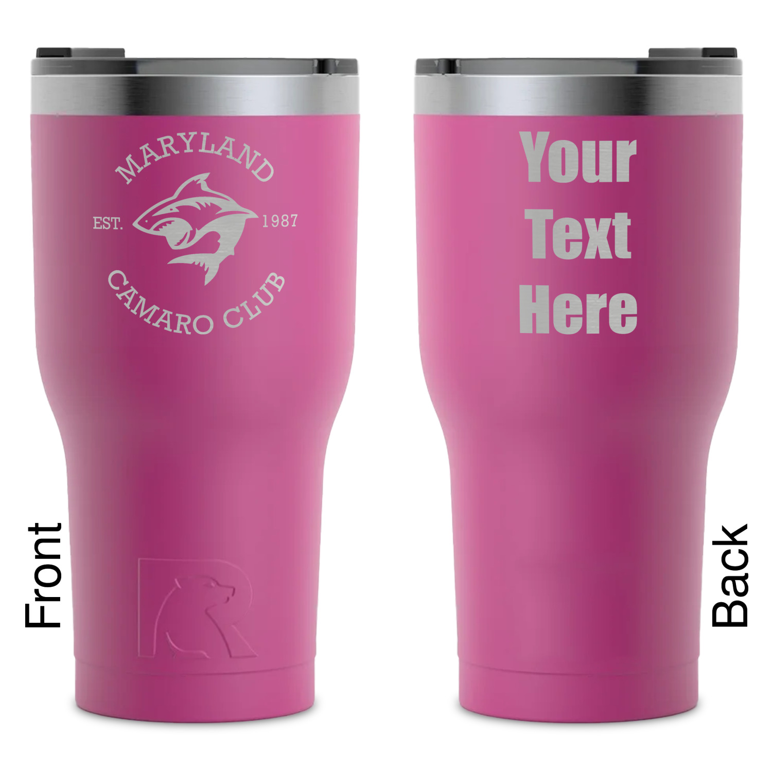 We sell these RTIC 30 Oz Tumblers in three different colors with two different engraving options. Choose from our selection of teal, white, or black. You can either choose to engrave the front only or both front and back. Your engravement will reveal the stainless steel material beneath the powder color coating, creating your personalization in a beautiful silver.