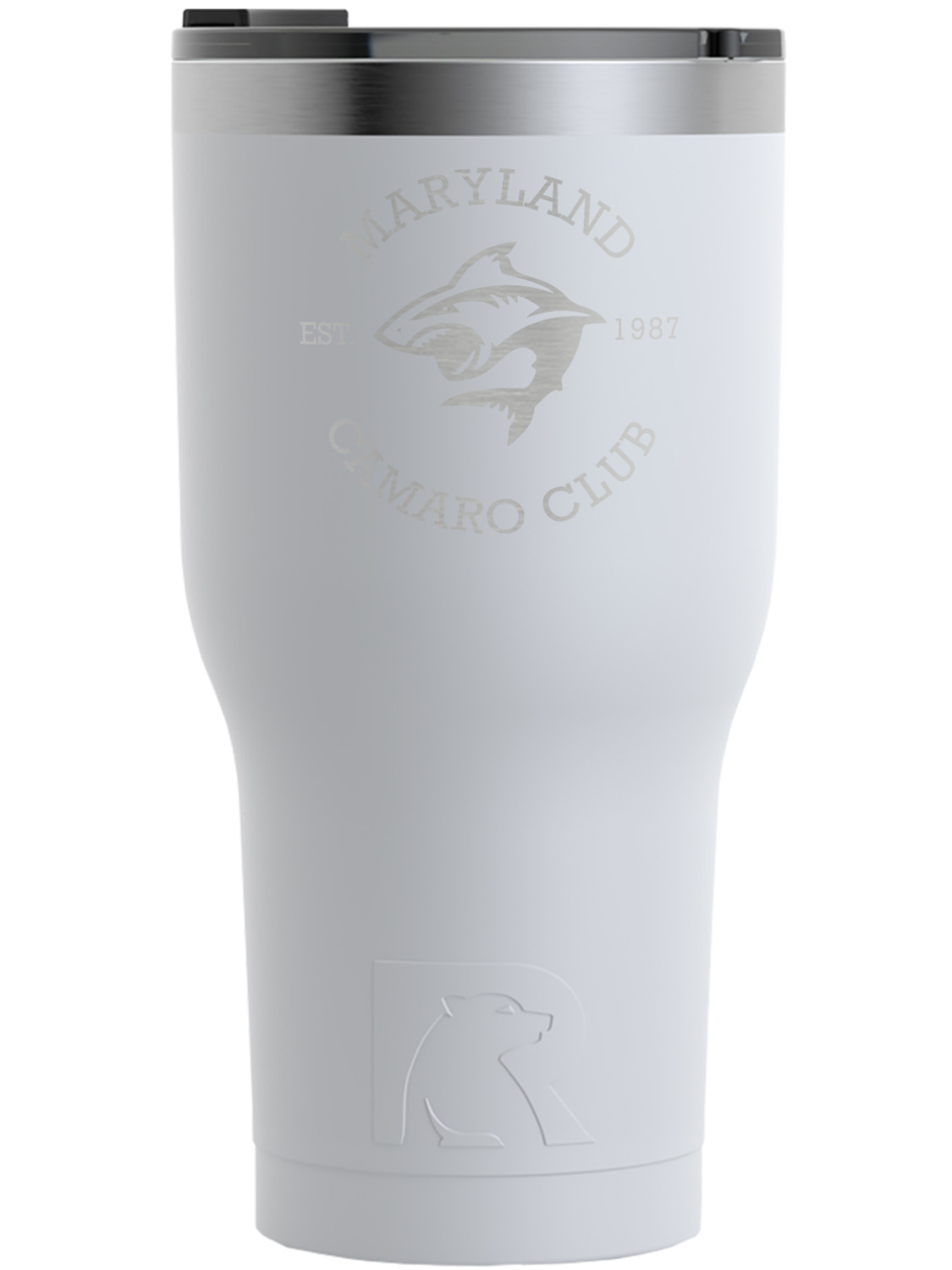 We sell these RTIC 30 Oz Tumblers in three different colors with two different engraving options. Choose from our selection of teal, white, or black. You can either choose to engrave the front only or both front and back. Your engravement will reveal the stainless steel material beneath the powder color coating, creating your personalization in a beautiful silver.