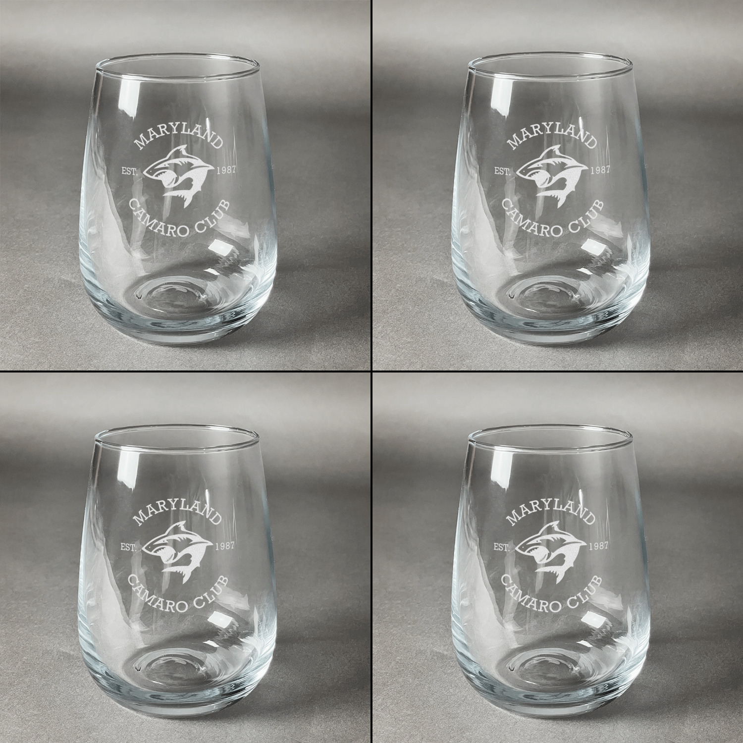 You can have all four glasses engraved with the same design or you can customize and personalize each glass individually - the choice is yours!!