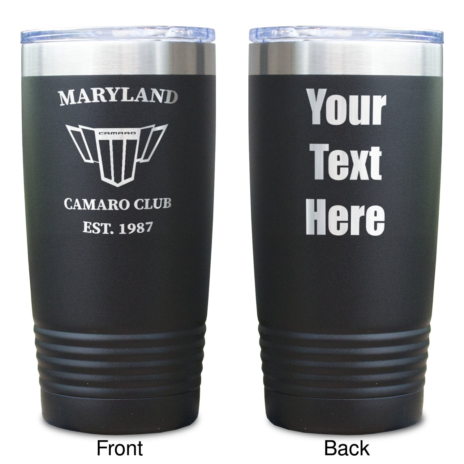 Available in 8 unique colors, these cups are crafted from 18/8 stainless steel and powder coated for their durable finish. With the 8 colors being Black, Pink, Red, Teal, White, Grey, Royal Blue, and Olive Green, you are sure to find a cup to fit your personality. You can chose to engrave on the front or the front and back of the cup. Use our design studio to design your own cup and we laser engrave it for you.